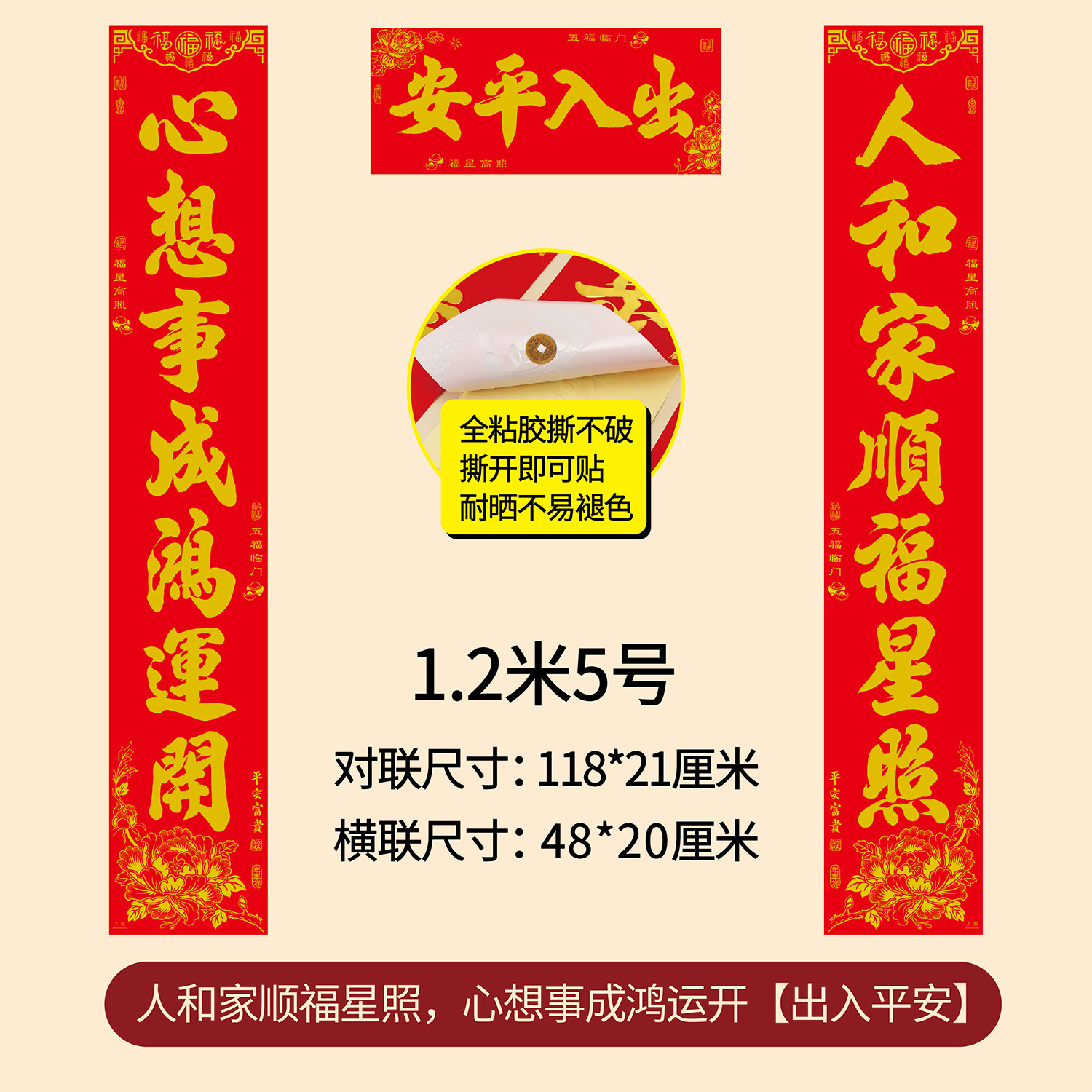 1.2m career prosperity, family happiness and peace five blessings (real length 118 * 21cm)
