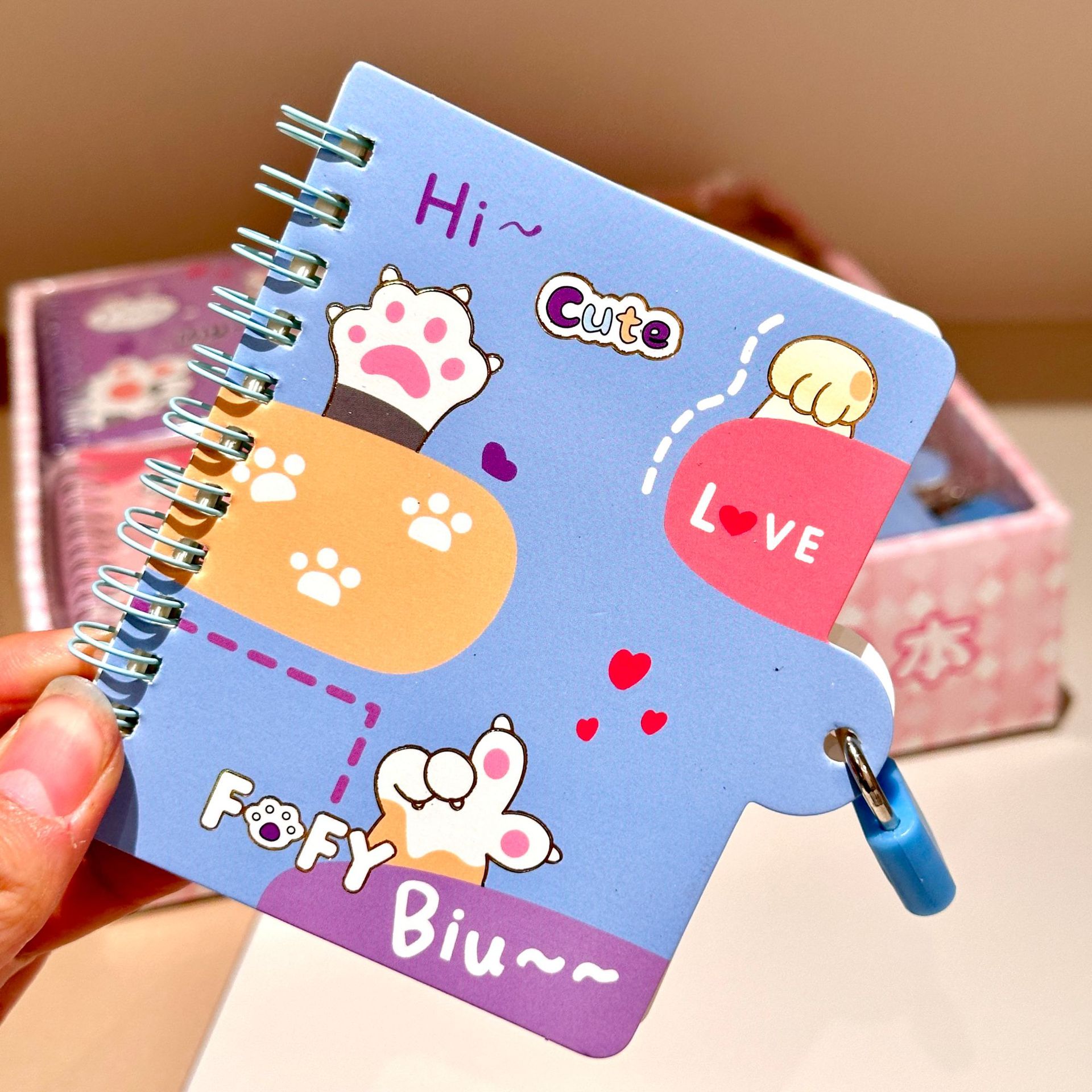 kitty with lock coil notebook cute cartoon a7 loose-leaf notebook notepad primary school student learning stationery wholesale