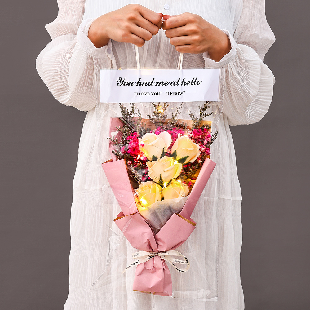 new high-end pink carnation + lighting chain + gift bag + greeting card ~