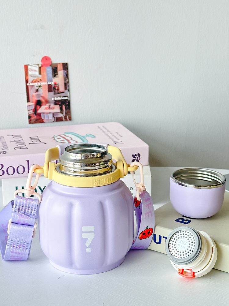 celebrity style large capacity pumpkin vacuum cup 316 stainless steel carrying pot cup portable with rope handle handle pot
