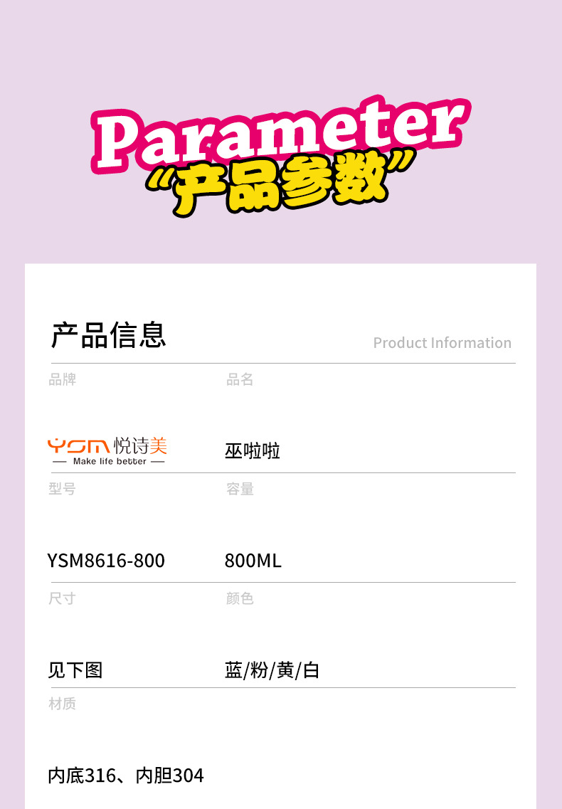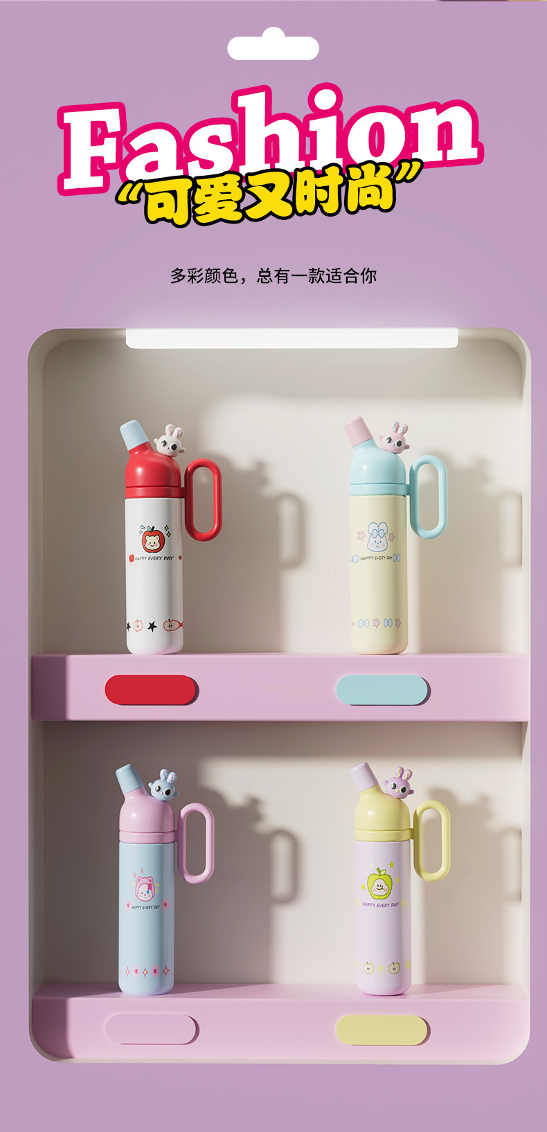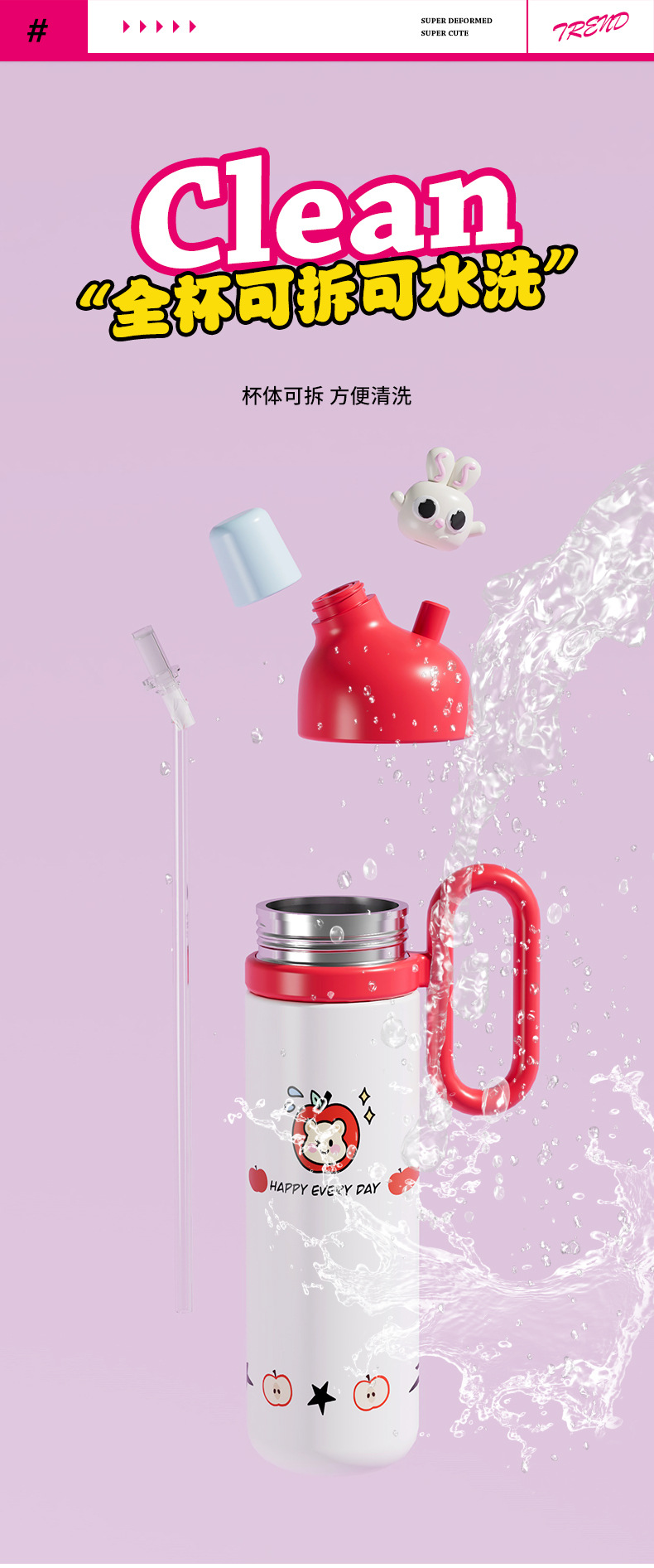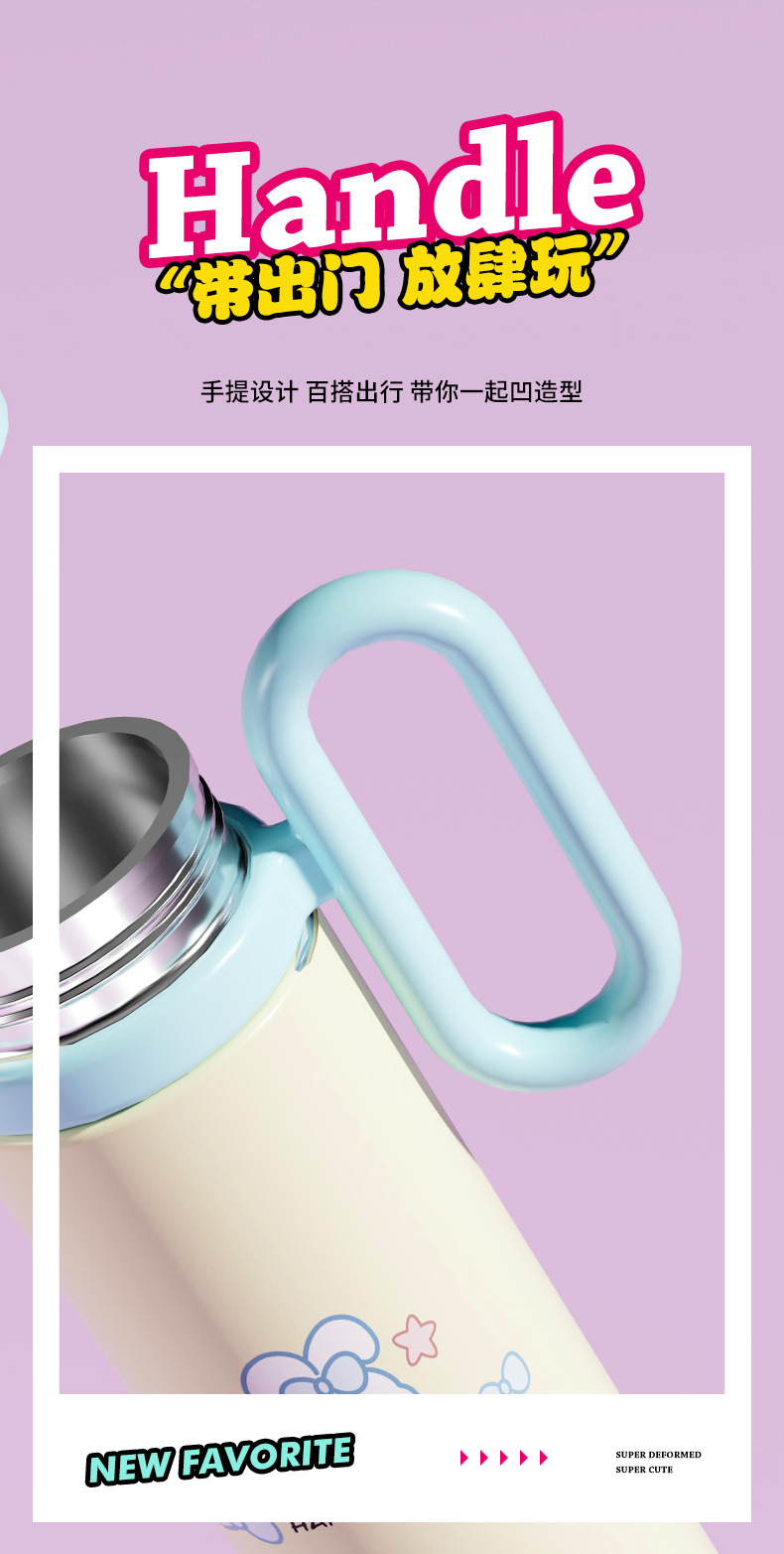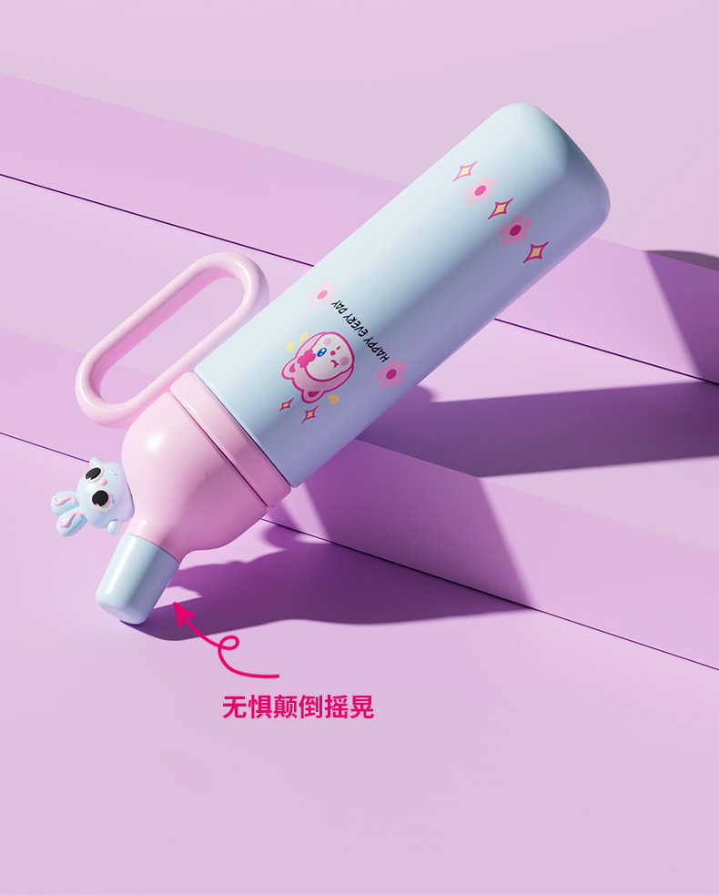cartoon 316 stainless steel vacuum cup cute large capacity straw double drinking cup children's water cup portable handle