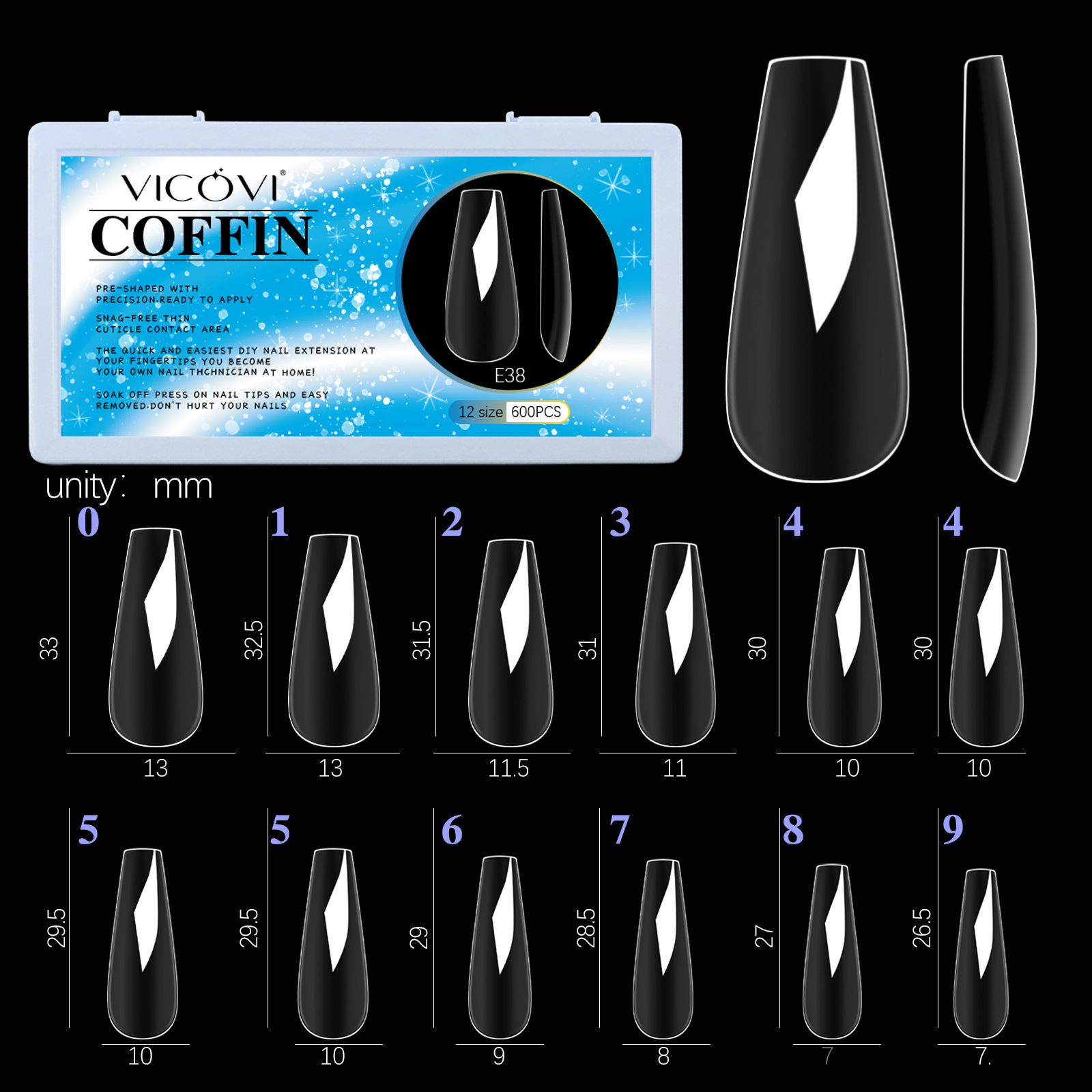 3xlt 500 pieces of pedal nail box transparent