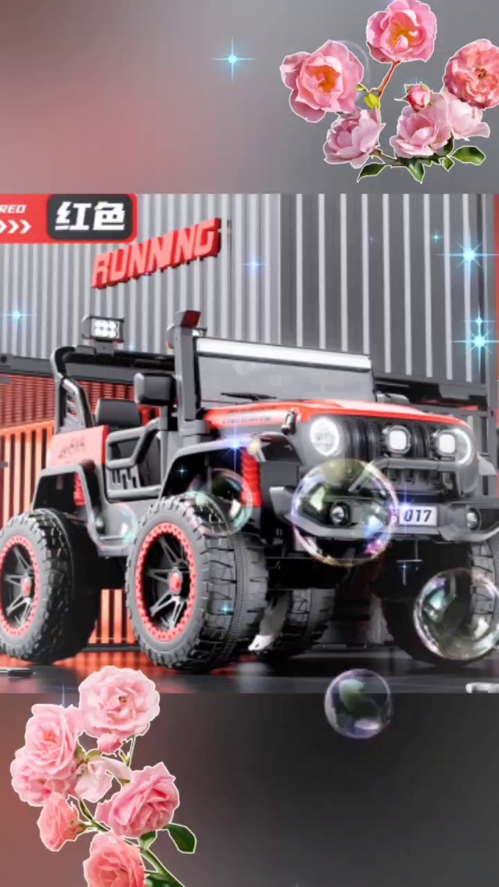 Simulation key start, MP3, early education, with Bluetooth 2.4g remote control, four-wheel high-intensity shock absorber, double door cool light, front and rear balance swing independent double row plus-sized seat comfortable space