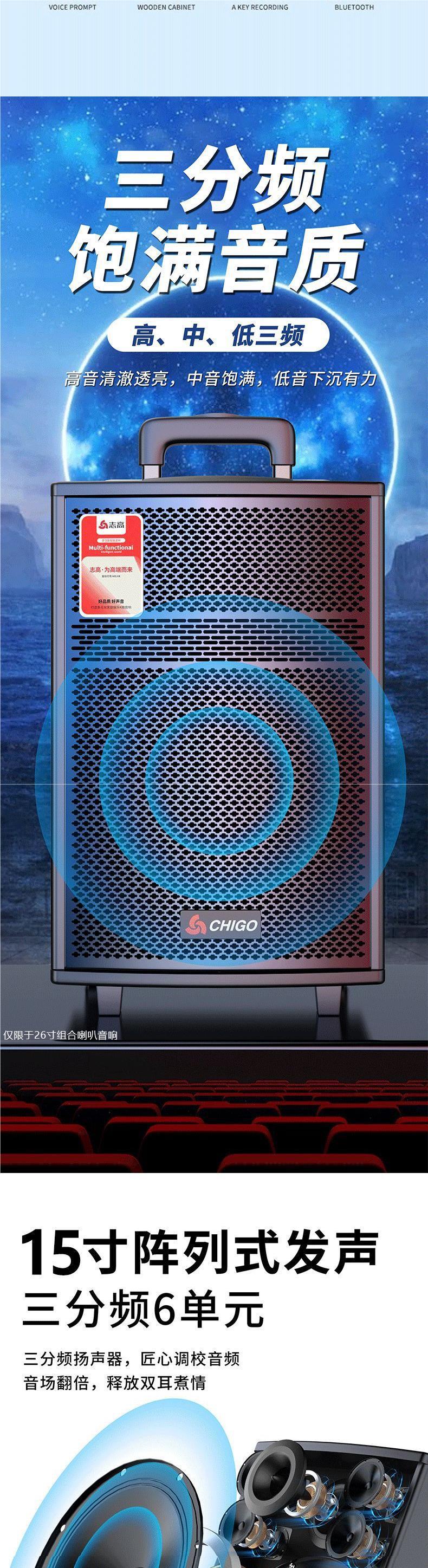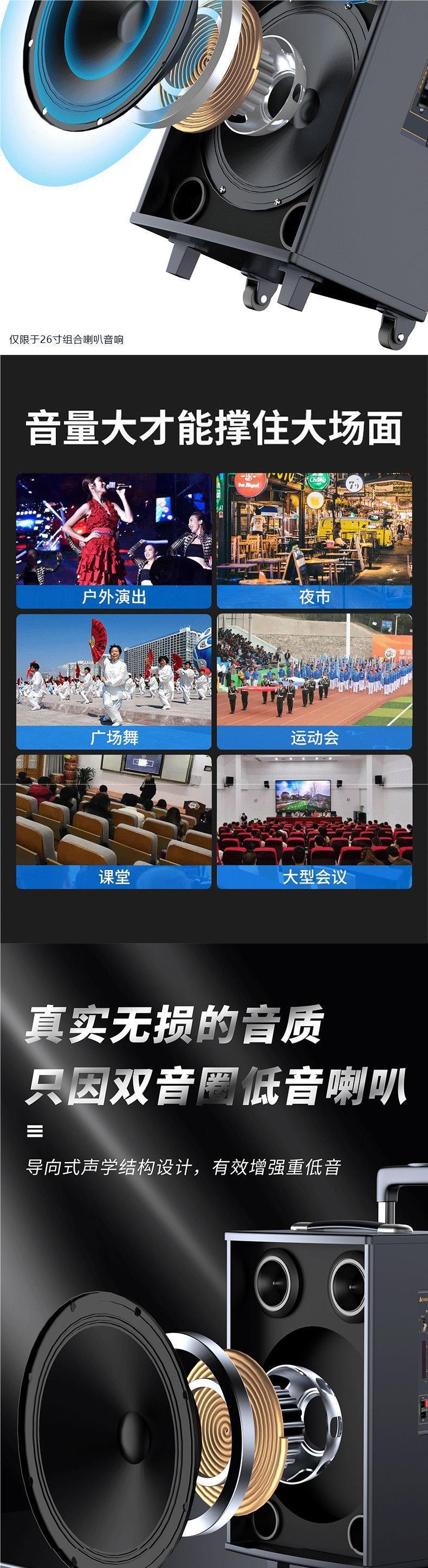 26-inch combination speaker [three-frequency six speakers] +1 wireless microphone +32g usb flash drive