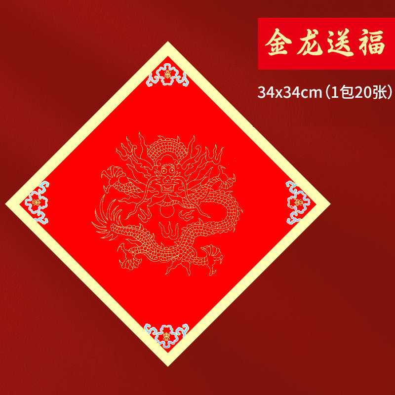 [wax dye] 34x34cm golden dragon sending blessing/20 sheets