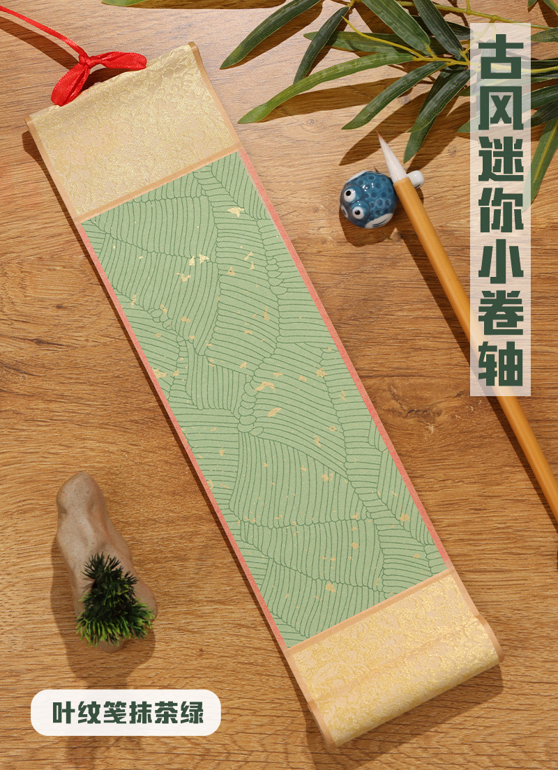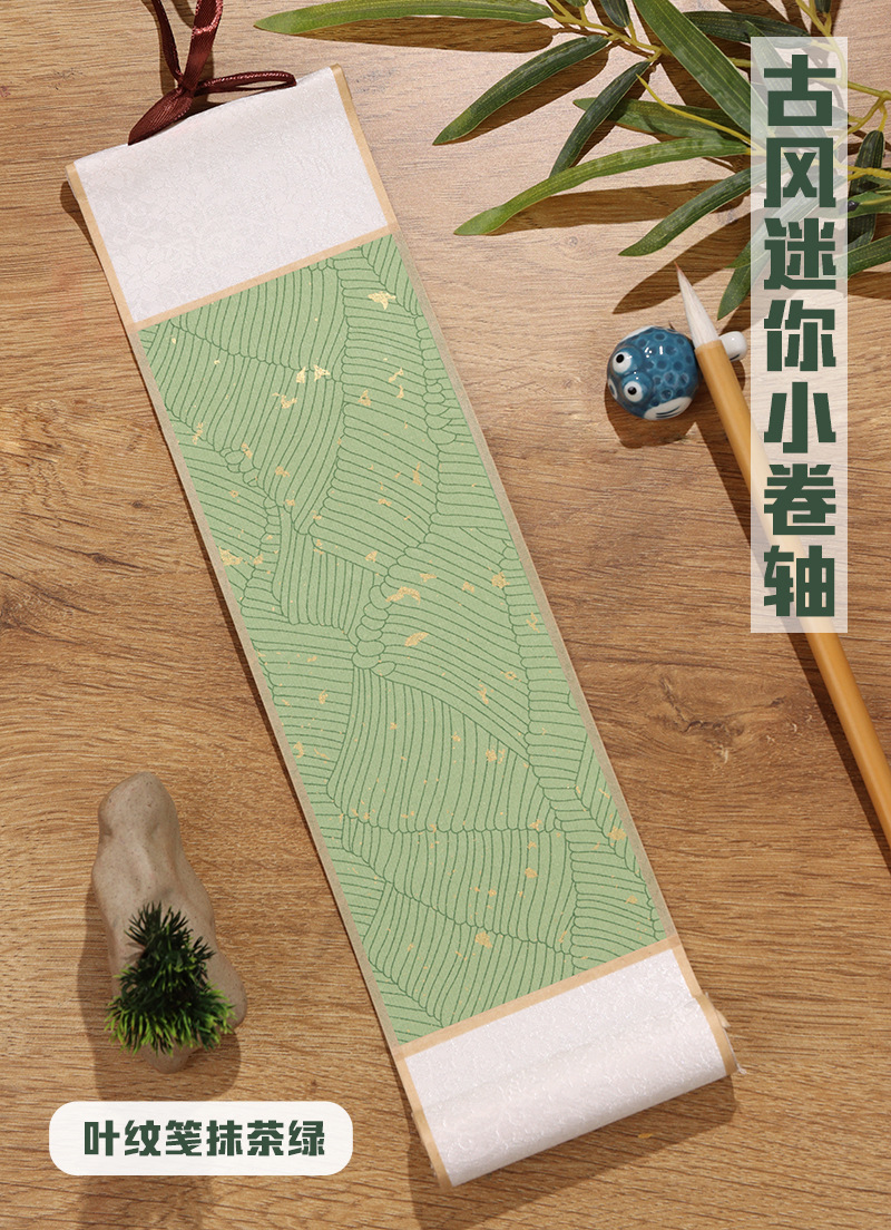 white ling cloth-leaf pattern note matcha green