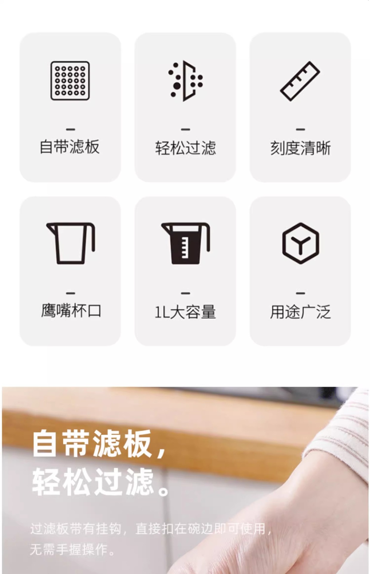 upgrade⭐filter measuring cup [1l transparent color]]✅send baffle
