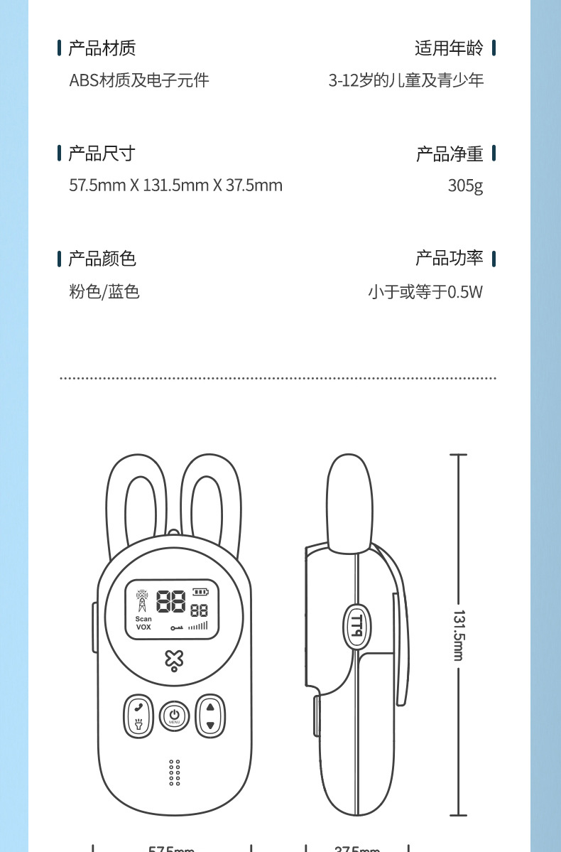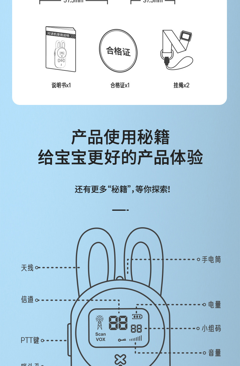 sky blue ☆ bunny walkie-talkie one pack ☆ super far intercom ☆ clear sound quality