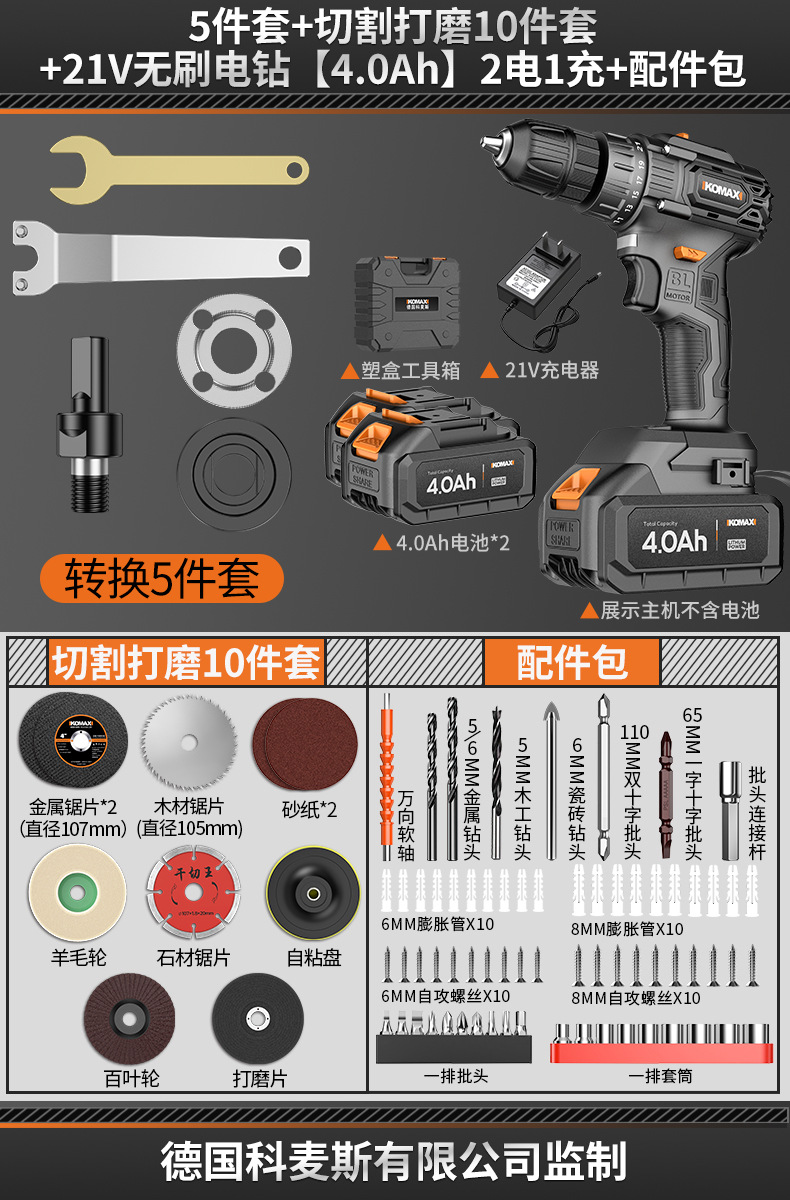 5-piece set +10-piece cutting and polishing set +21v brushless electric drill [4.0ah] 1 power 1 charge + configuration