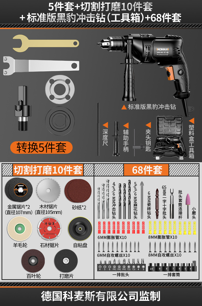 5-piece set +10-piece set of cutting and polishing + enhanced black panther impact drill (toolbox) +68