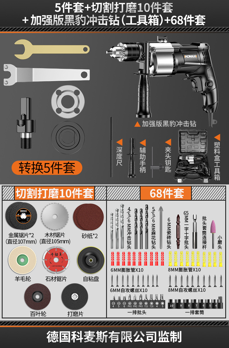 5-piece set +10-piece set for cutting and polishing + standard black panther impact drill (toolbox) +68