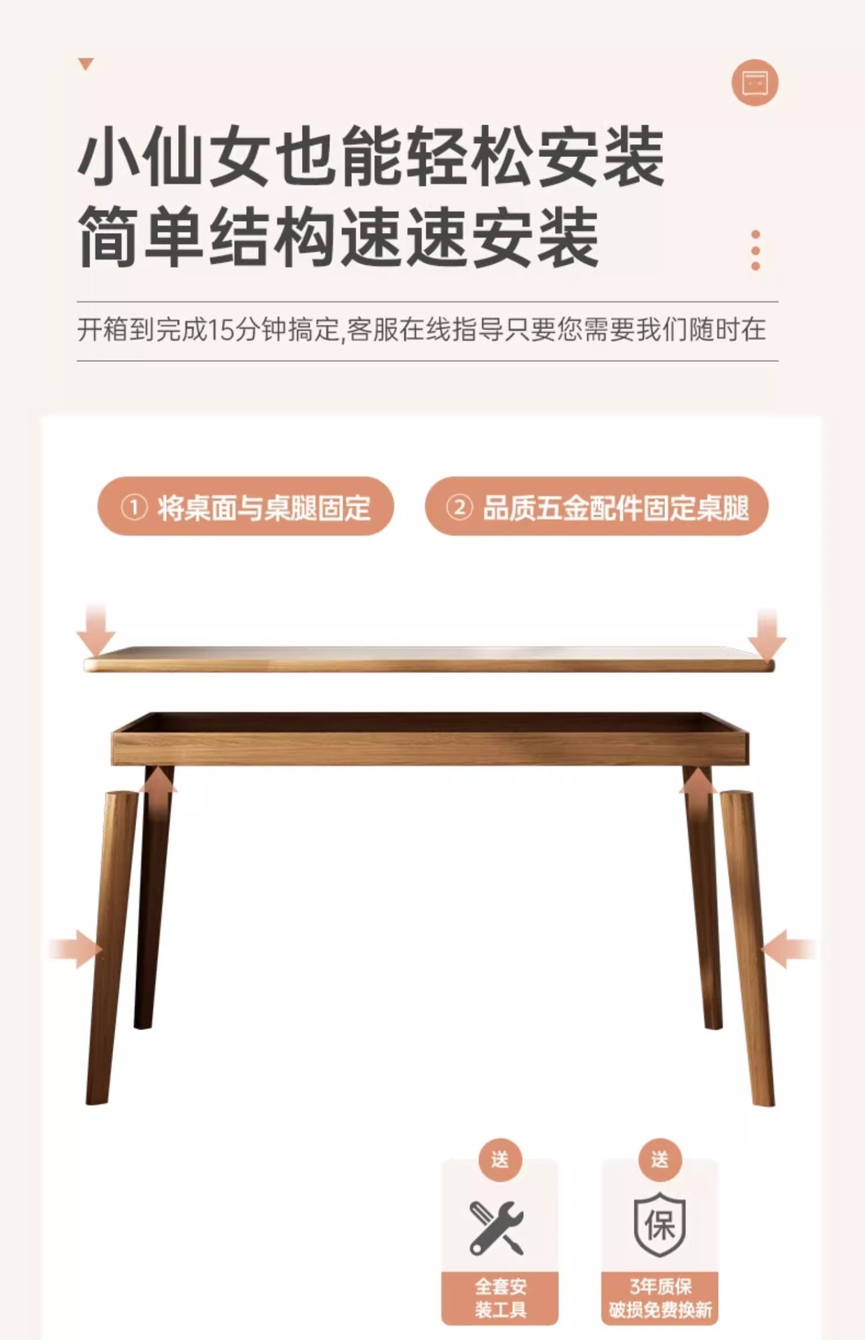 warm white 140cm + solid wood chair cream style
