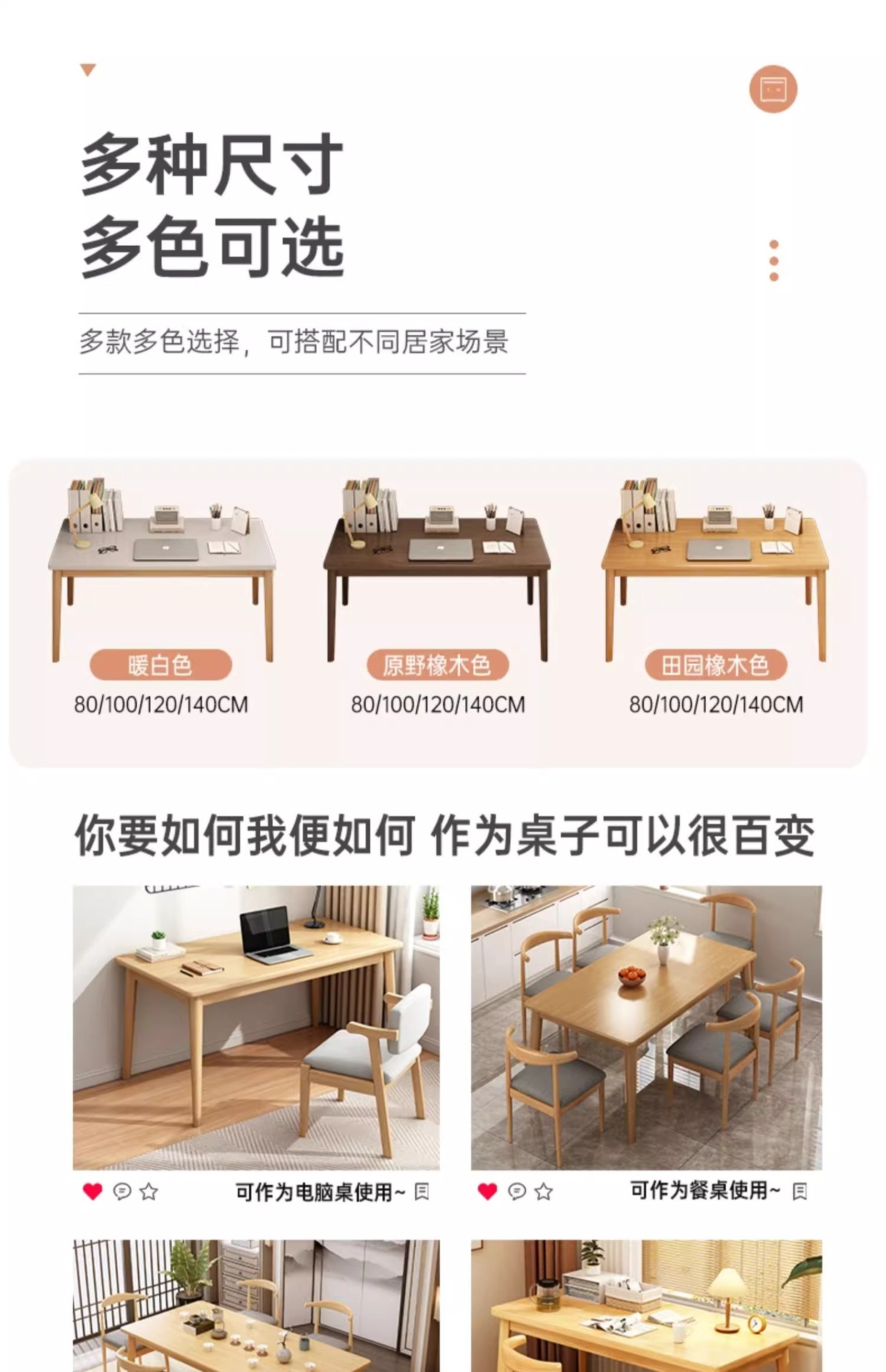 warm white 120cm + solid wood chair cream style