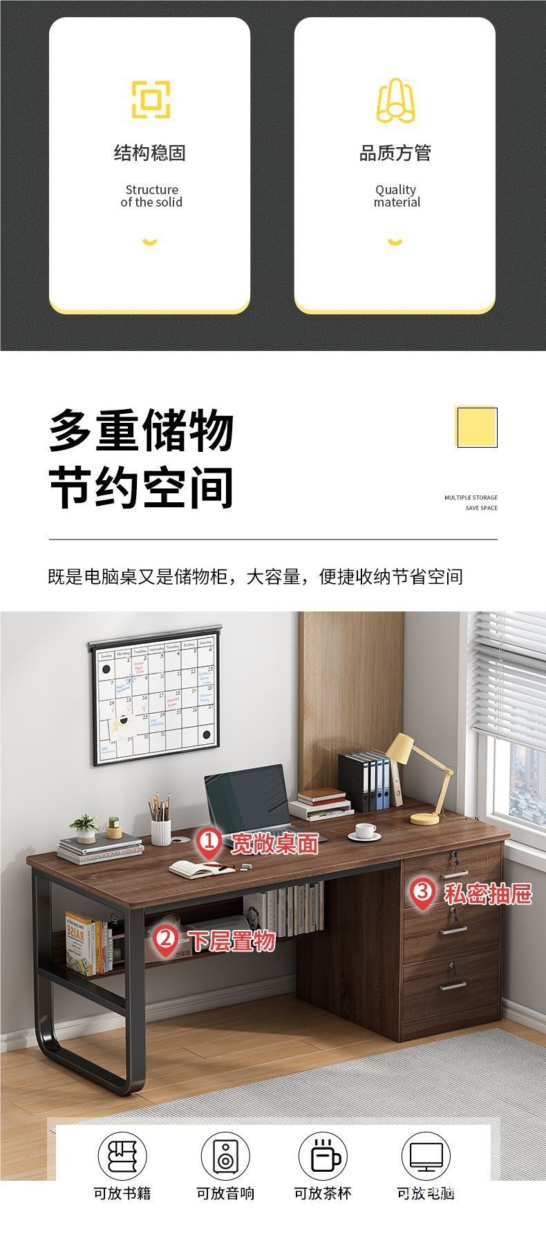 [three drawers with lock] 120cm yuan ye oak color
