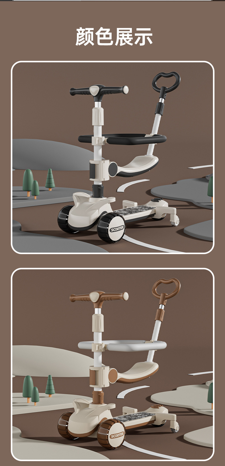 moge brown + hummer wheel + seat + music + push handle + fence + universal wheel