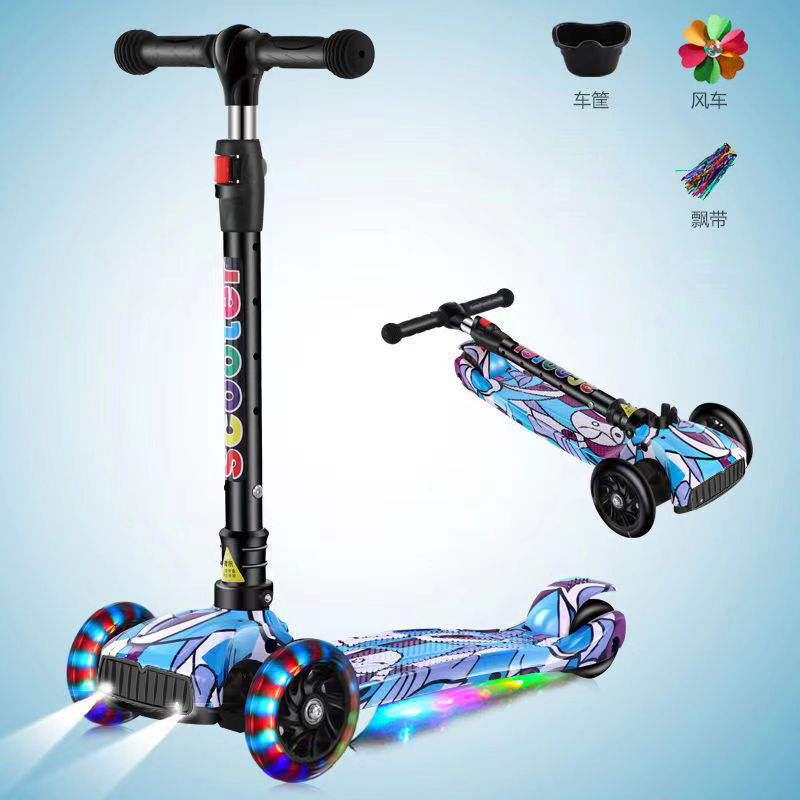 double pedal blue graffiti flashing wheel