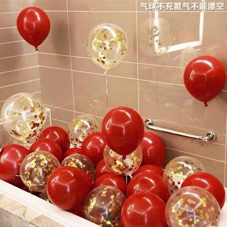 10-inch double-layer pomegranate red wedding balloon 30 + gold sequins 20