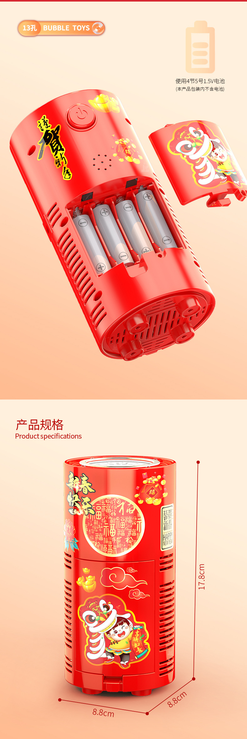 13-hole fireworks bubble machine-simple version 2 lights [+1 bottle 80ml bubble water +4 aa batteries]]