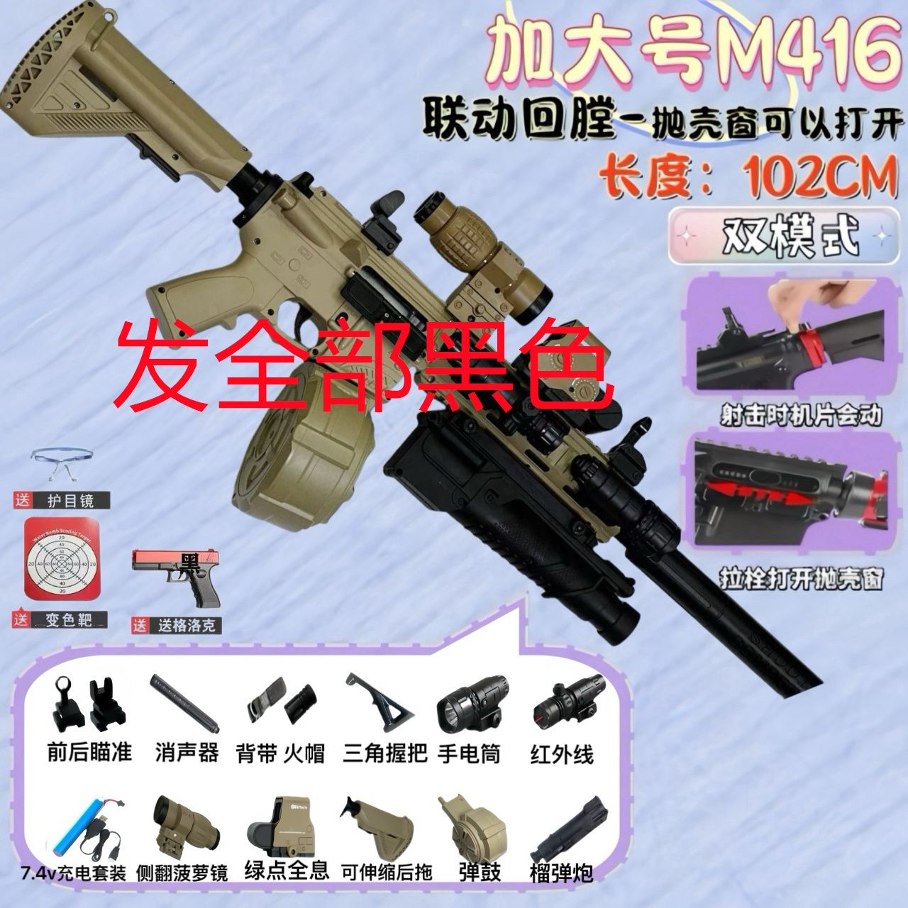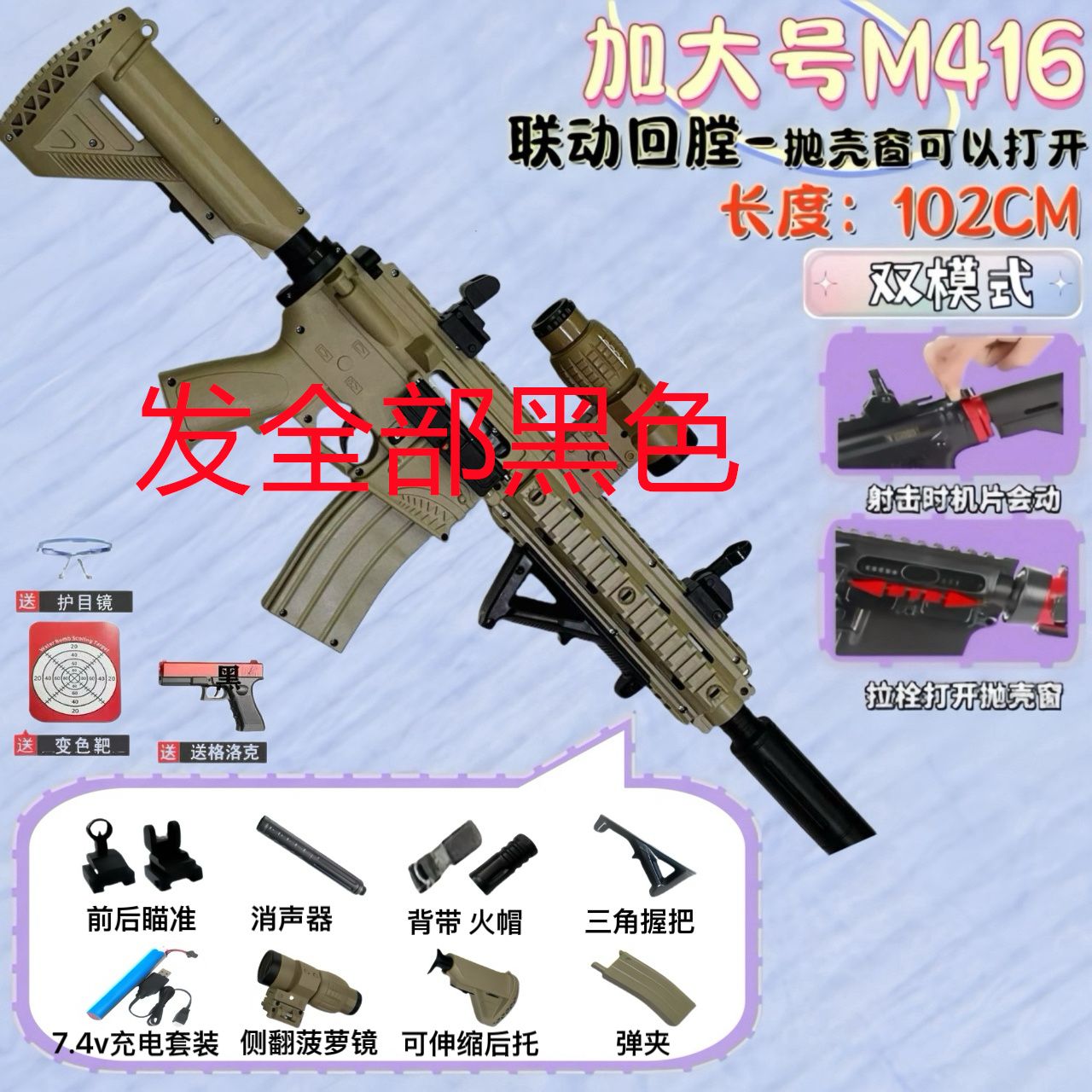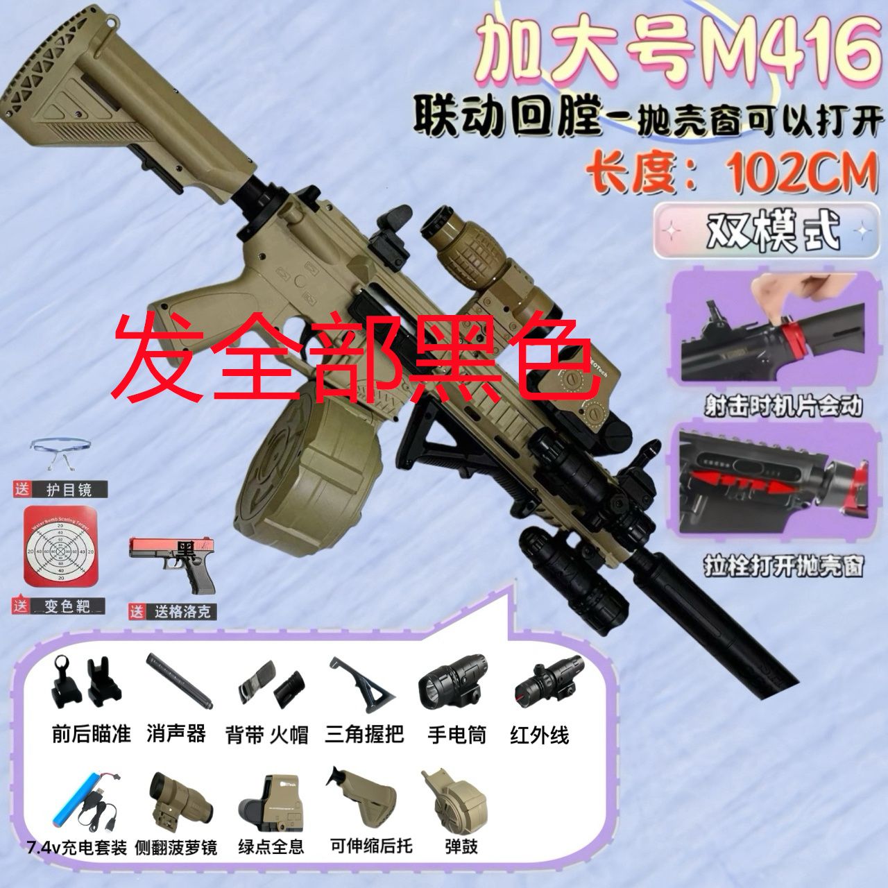 | color changing target + bicycle glasses + pistol +2 spare clips] get 20000 bullets for free | CN¥ 164.7 | 999999 piece available |