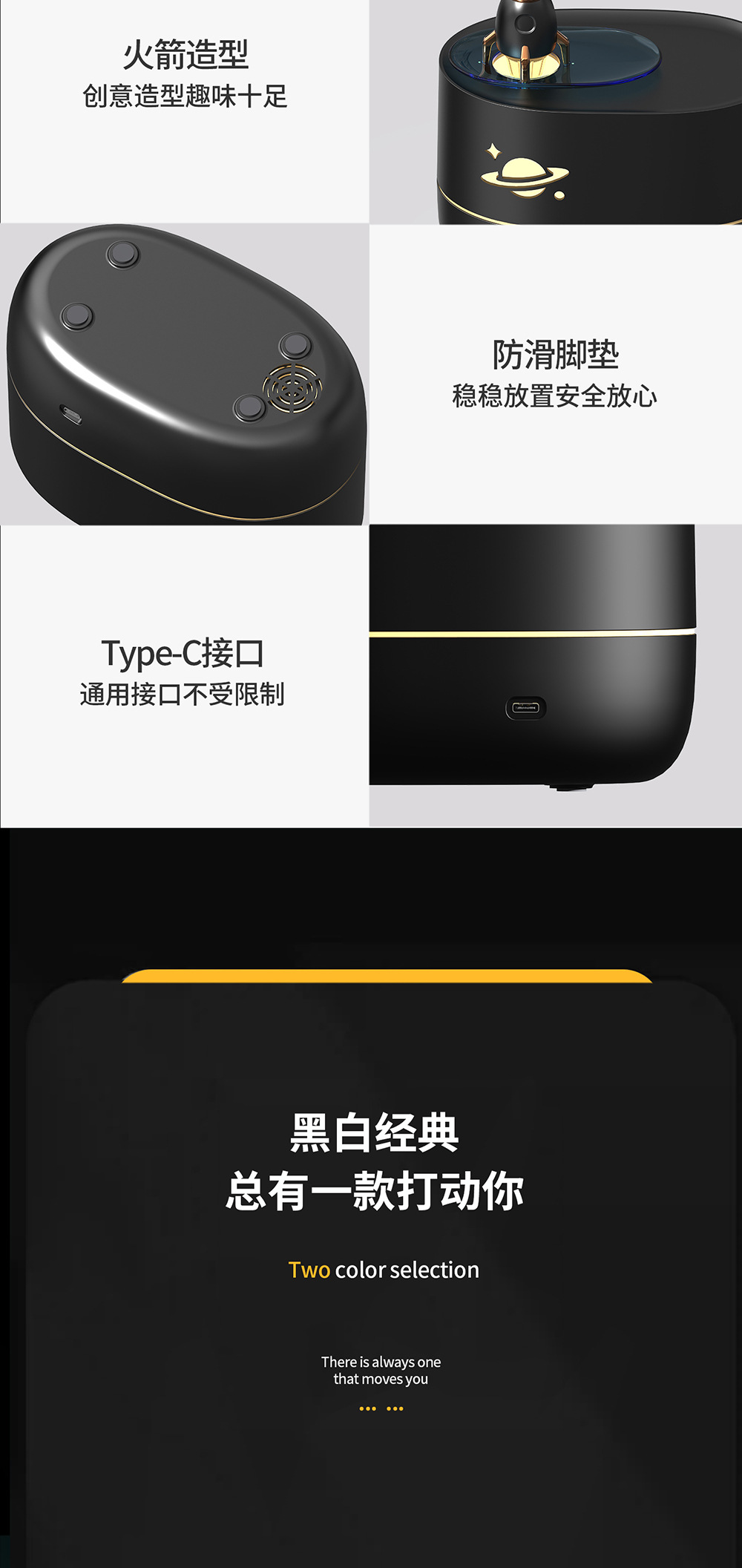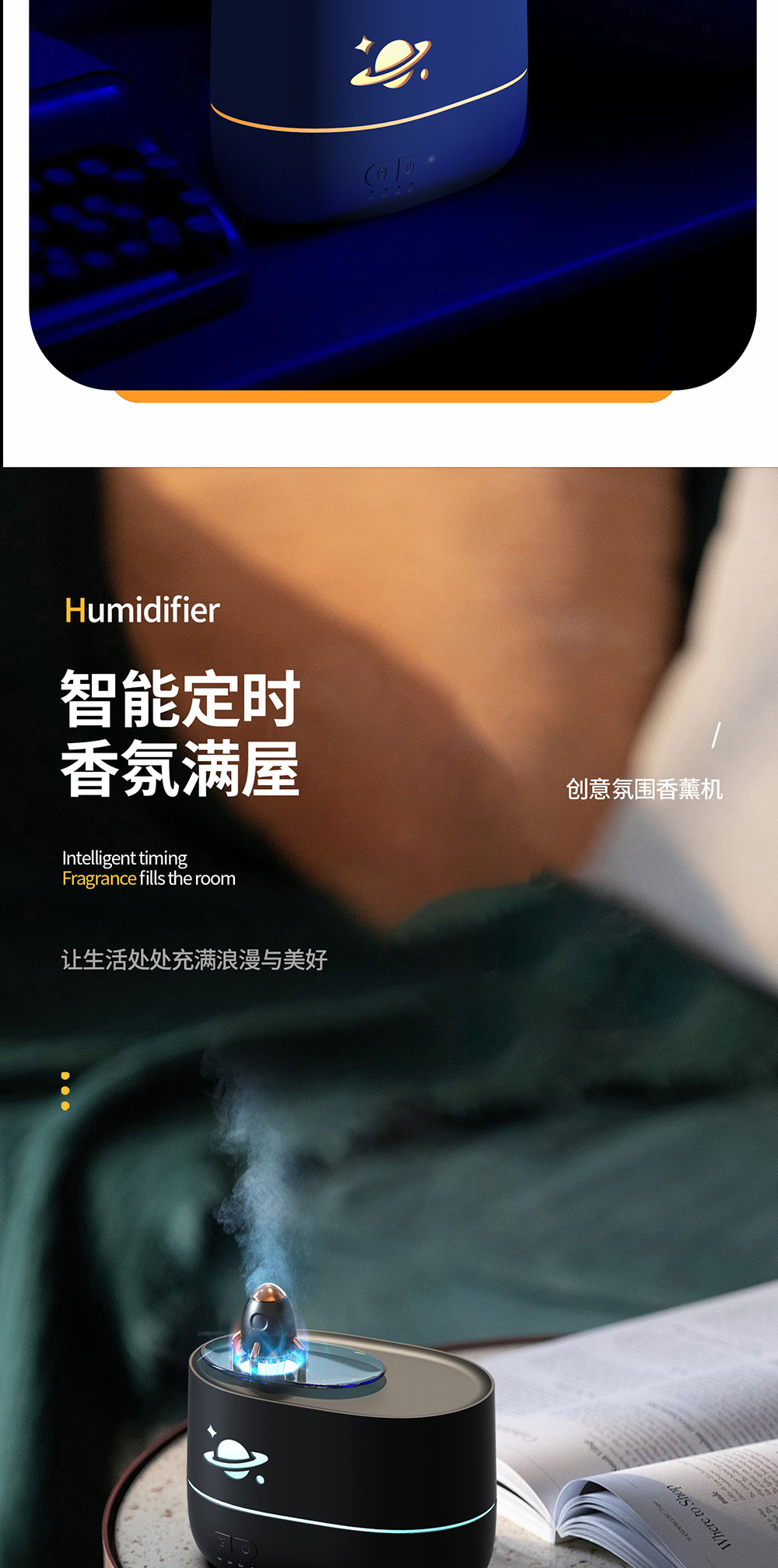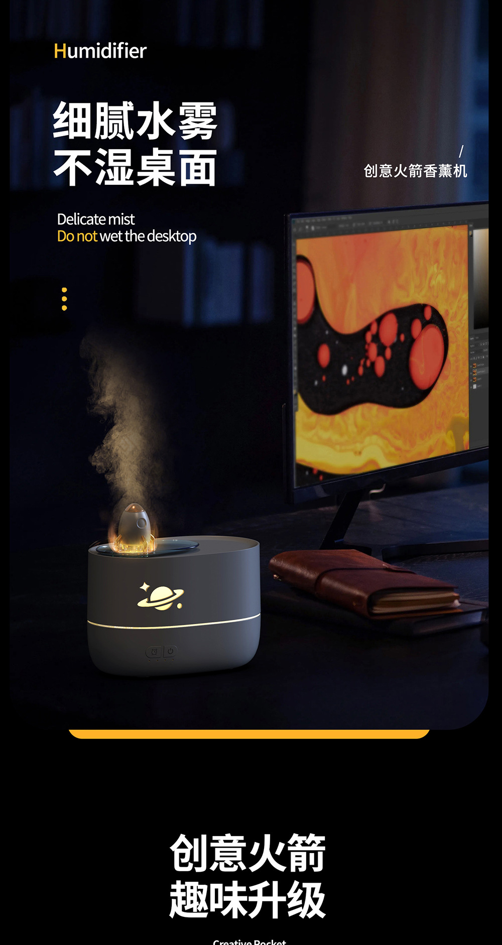cross-border new arrival colorful flame rocket aroma diffuser household bedroom small night light desktop humidifier creative gift