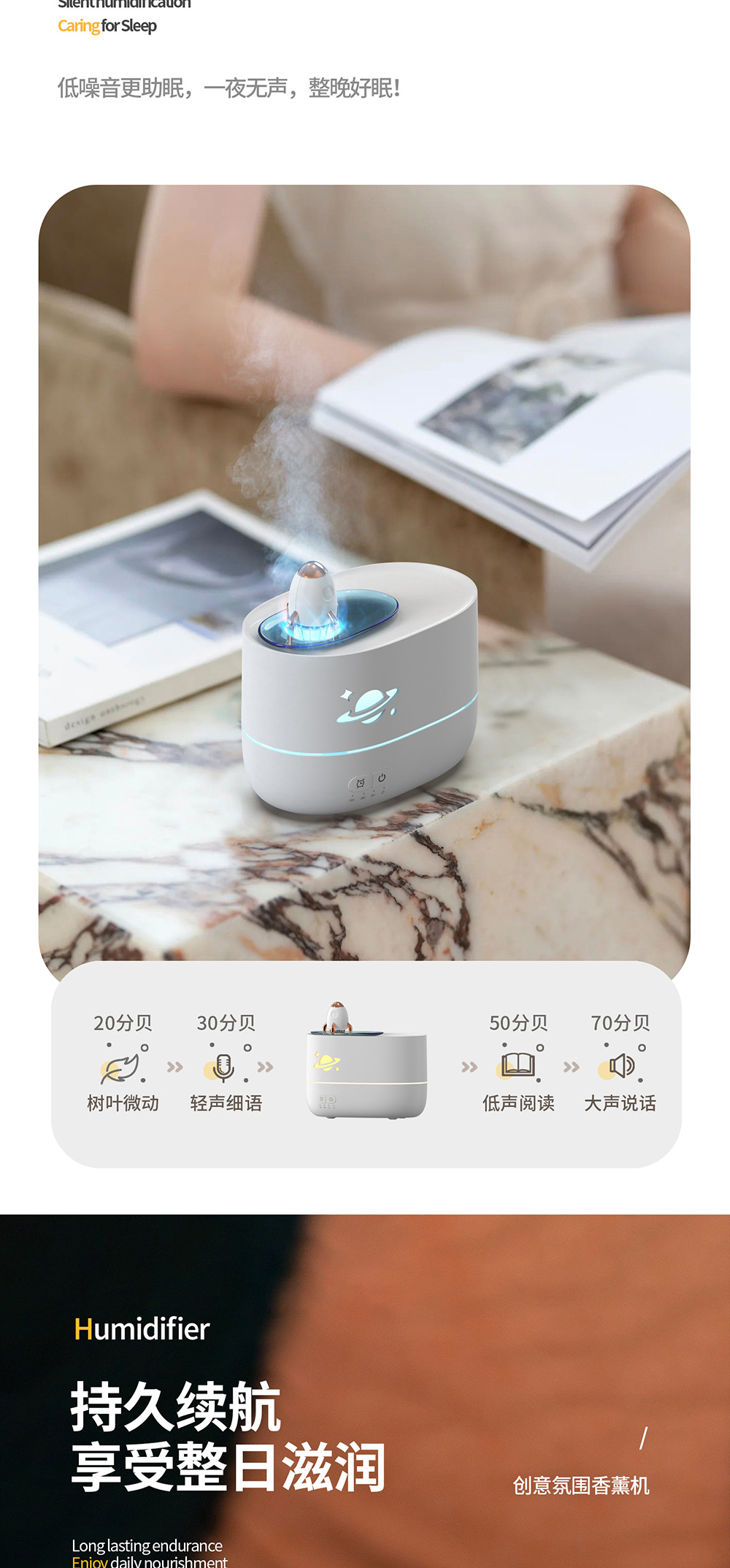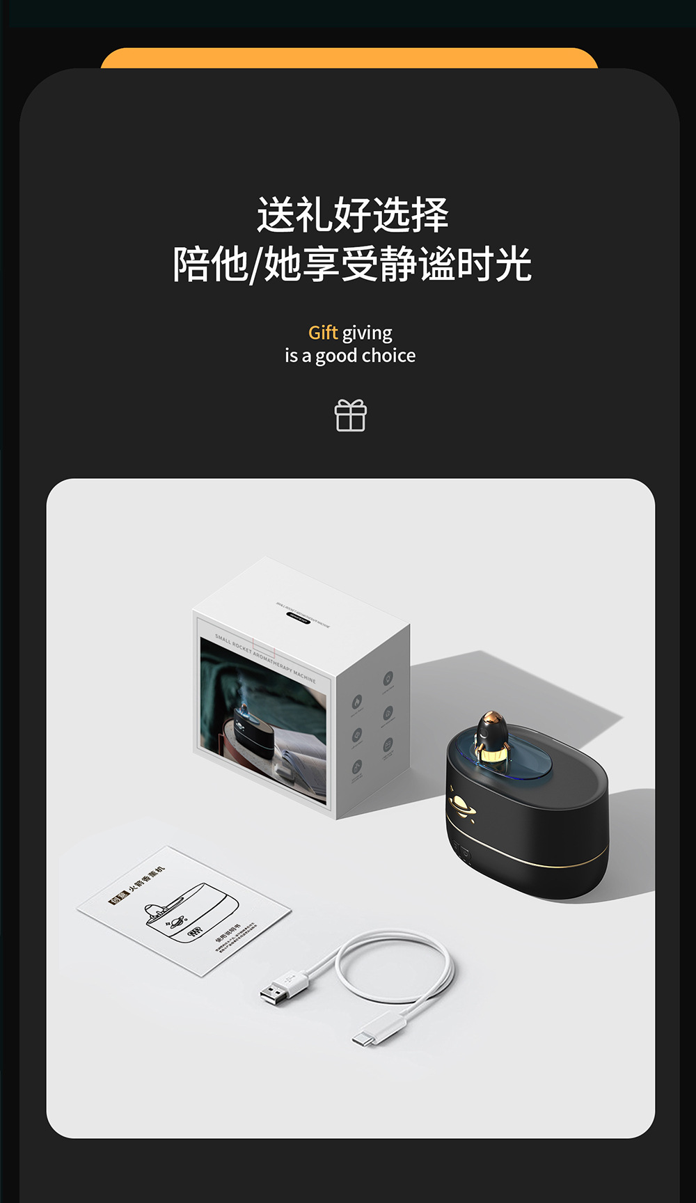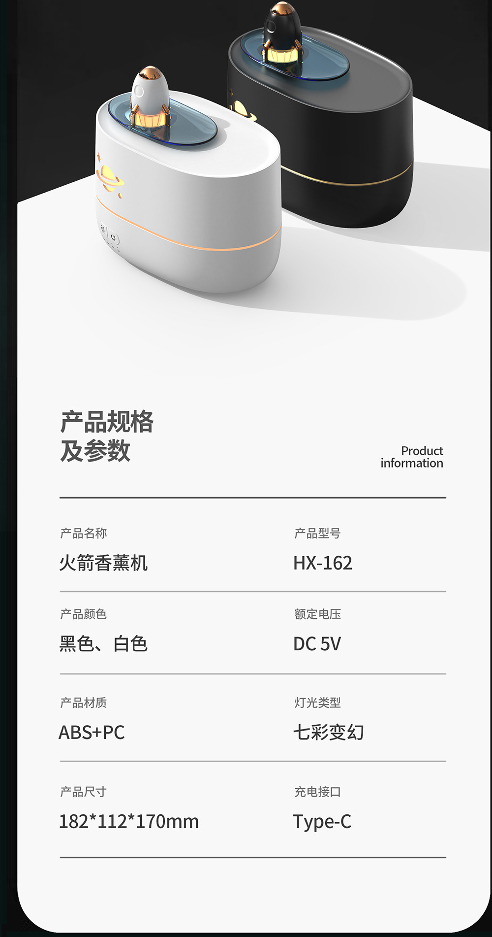 cross-border new arrival colorful flame rocket aroma diffuser household bedroom small night light desktop humidifier creative gift