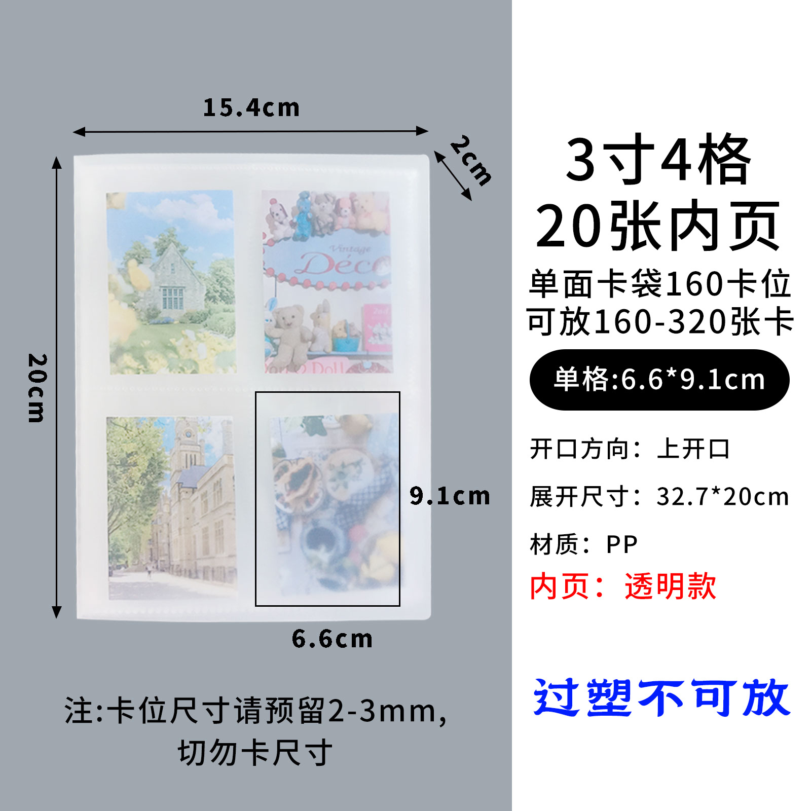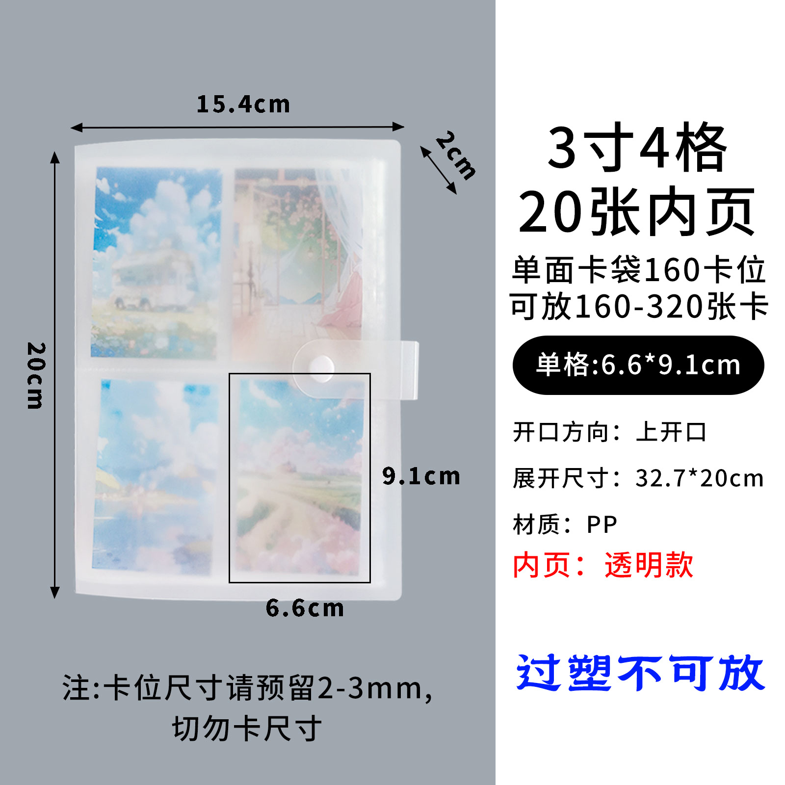 3-inch 4-grid transparent [single-sided] 160 card position