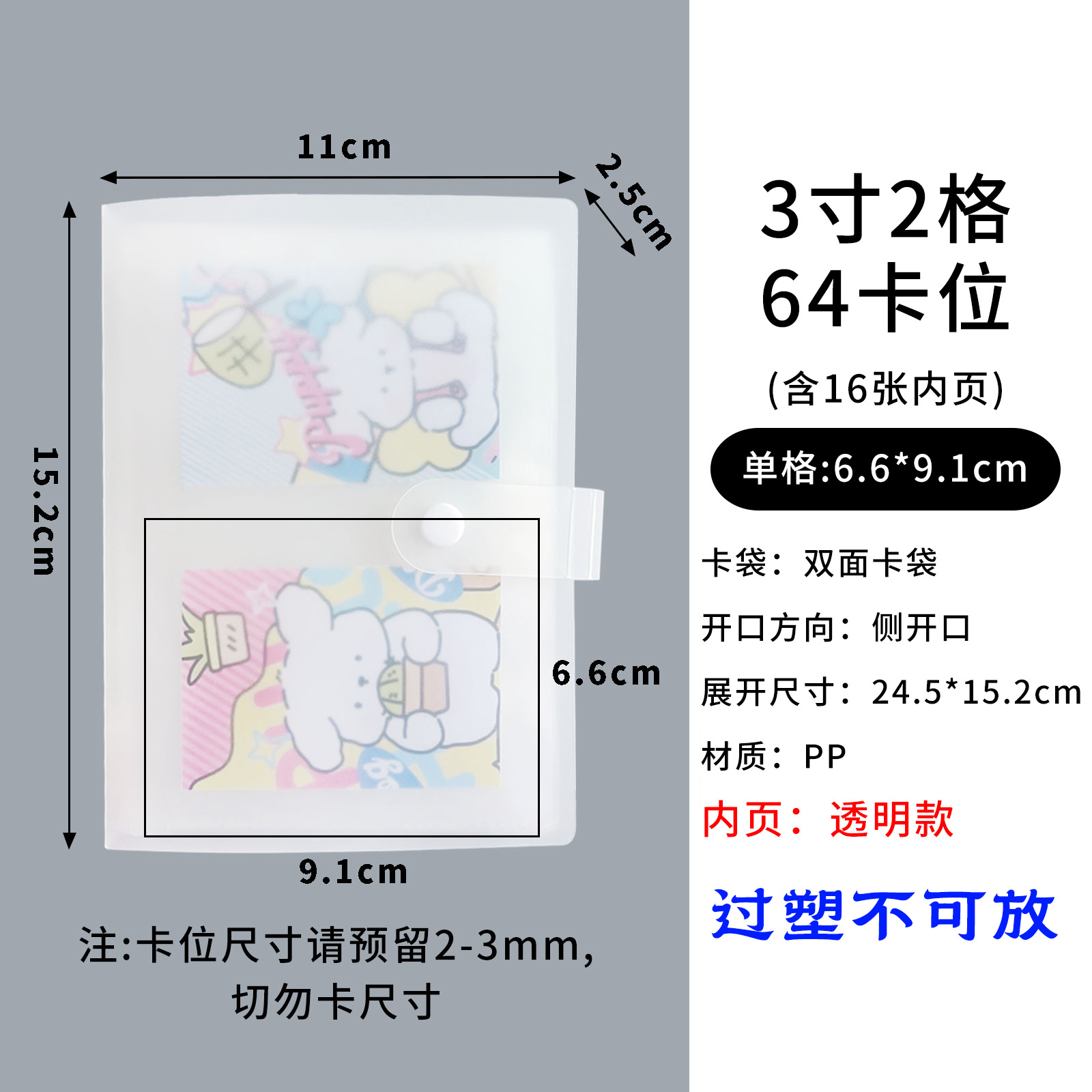 3-inch 2-grid buckle 64 card position