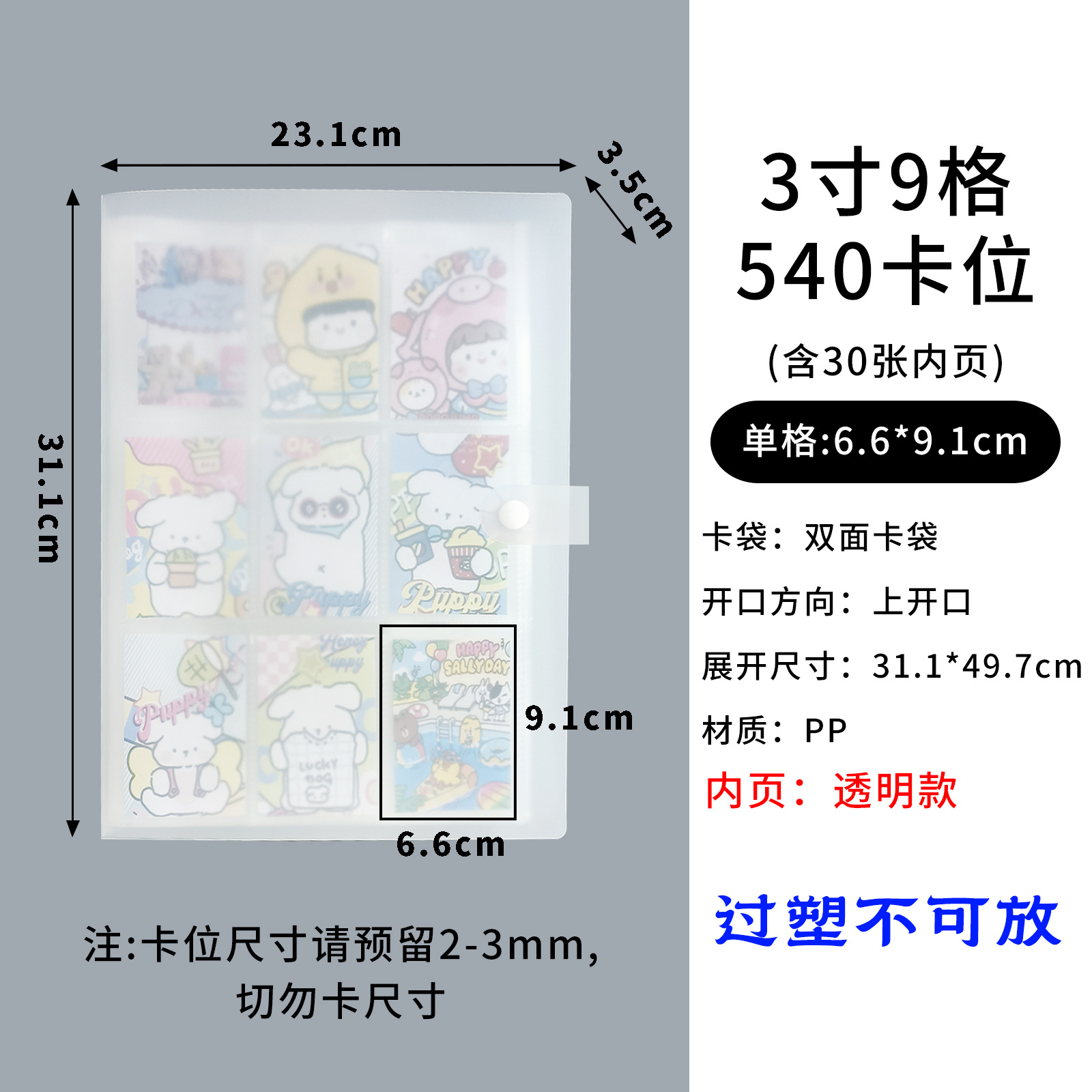 3-inch 9-grid buckle 540 card position