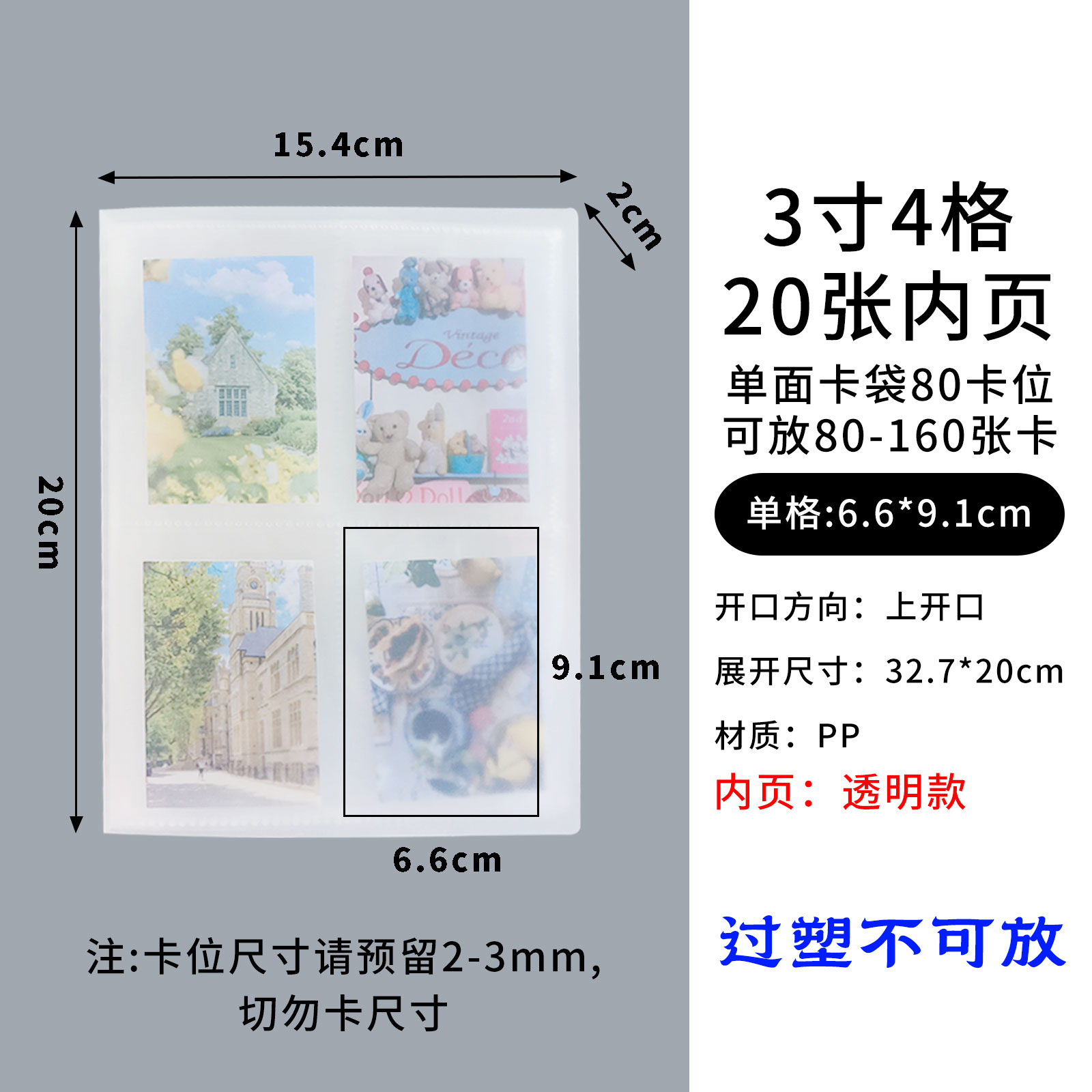 3-inch 4-grid transparent [single-sided] 80 card position