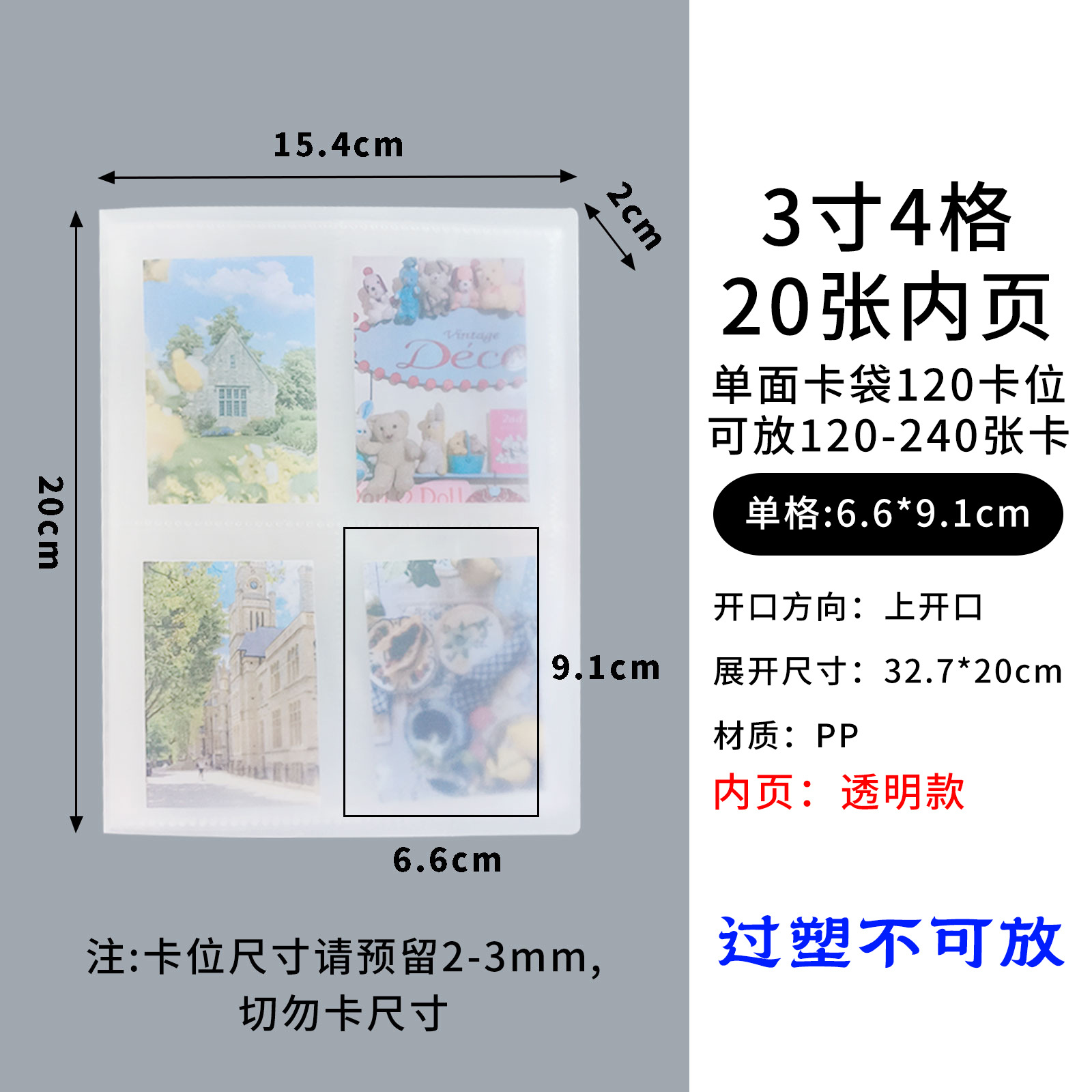 3-inch 4-grid transparent [single-sided] 120 card position