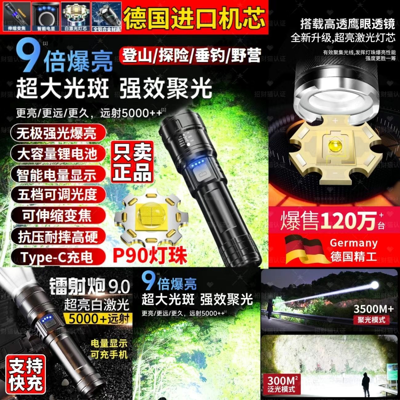 | zhenzang] 999000k bright + large lithium battery | CN¥ 11.29 | 999999 piece available |