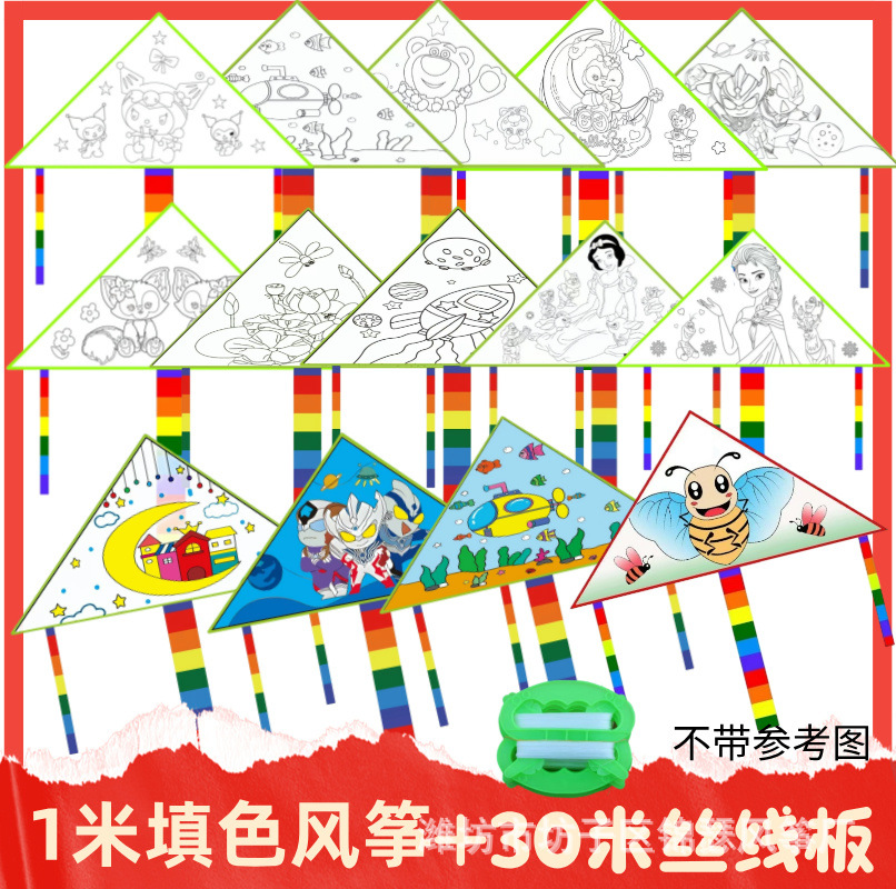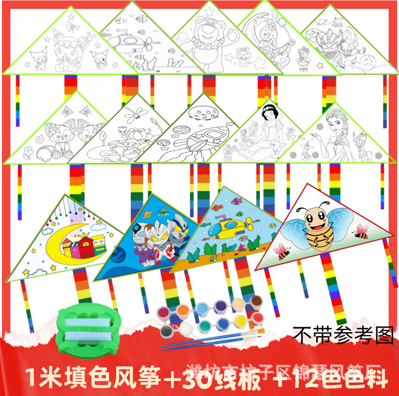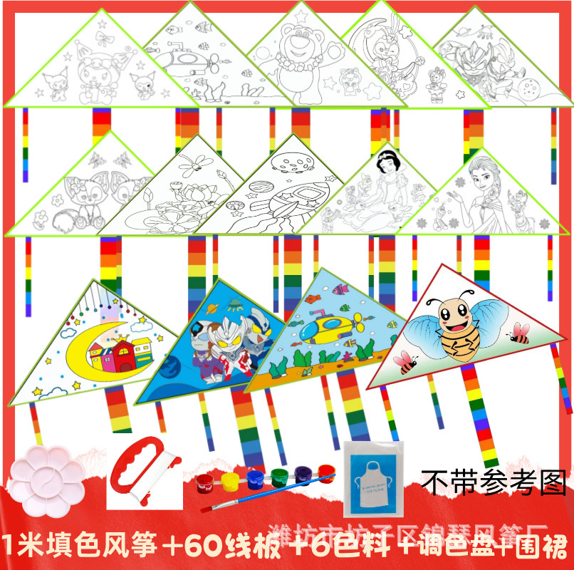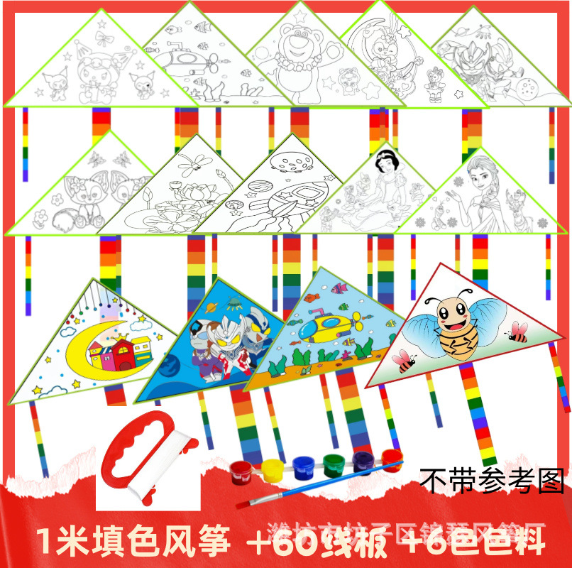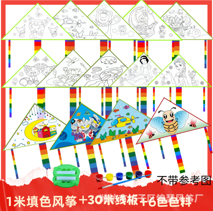 1 m color filling kite +30 m line board + six color paint + brush (a set)