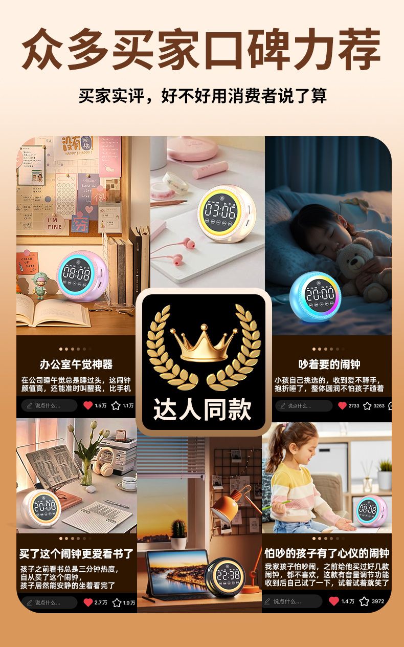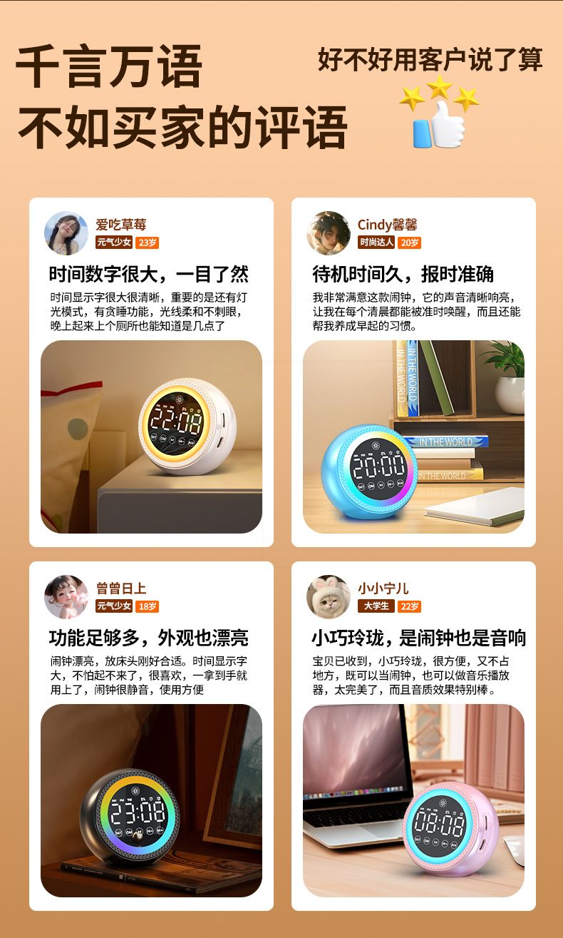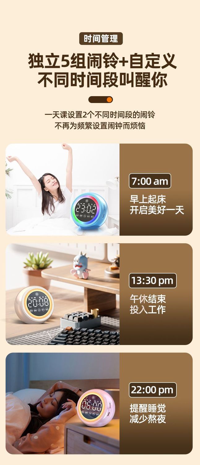 | upgrade double alarm clock version + stereo sound quality + standby duration for 30 days | CN¥ 52.59 | 999999 piece available |
