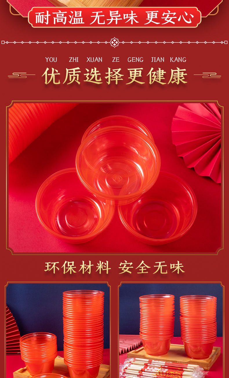 | 100 festive bowls (2 bags) + bamboo chopsticks 100 pairs | CN¥ 31.37 | 999999 piece available |