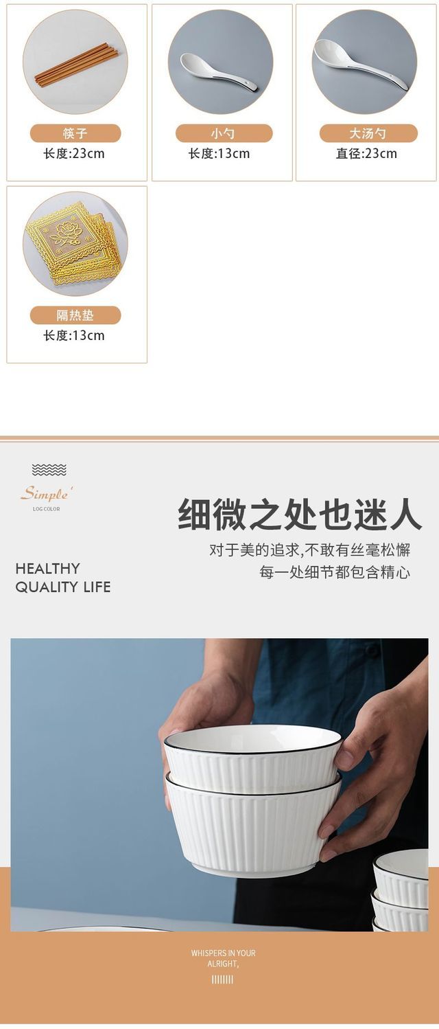| 4 bowls, 2 plates, 4 spoons, 4 chopsticks, 1 soup bowl, 1 spoon | CN¥ 34.66 | 999999 piece available |