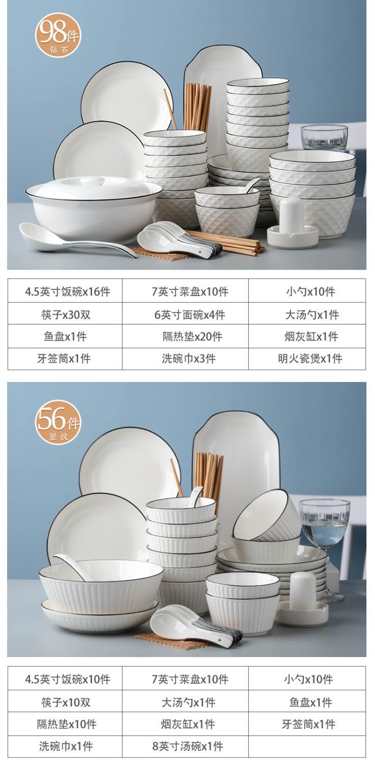 | 56 pieces with open flame ceramic casserole [10-person deluxe edition]] | CN¥ 166.79 | 999999 piece available |