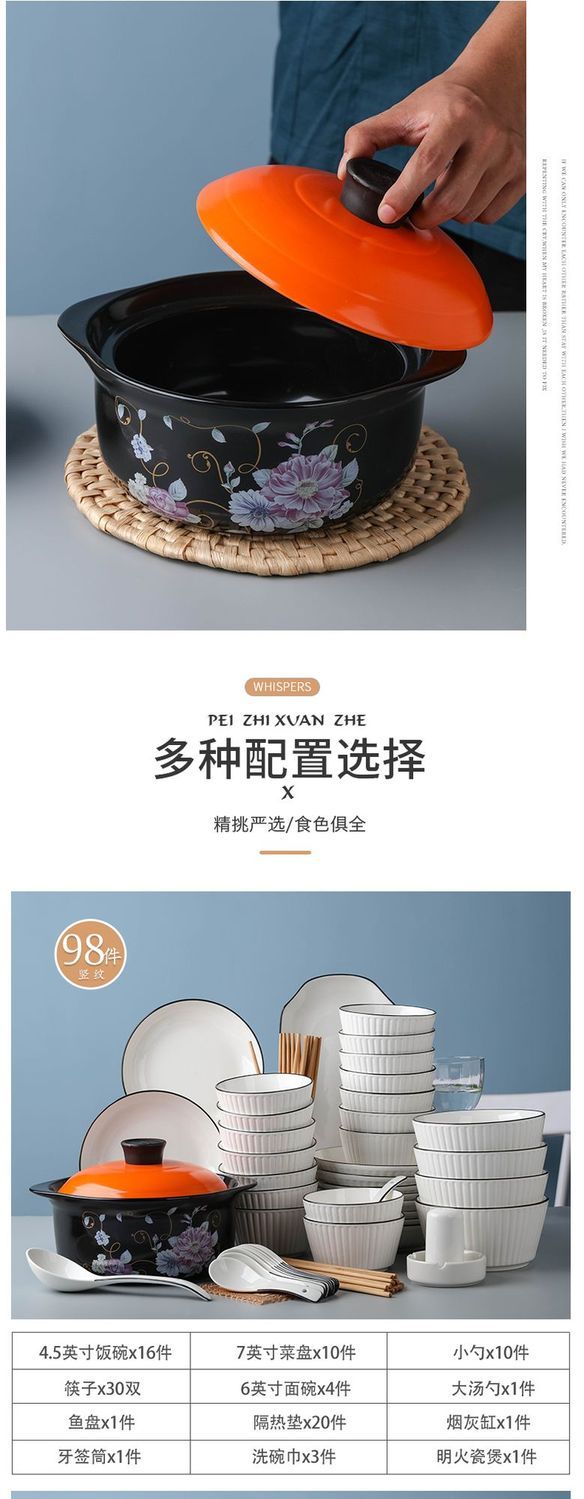 | 98 pieces with open flame ceramic casserole [big family deluxe edition]] | CN¥ 207.35 | 999999 piece available |