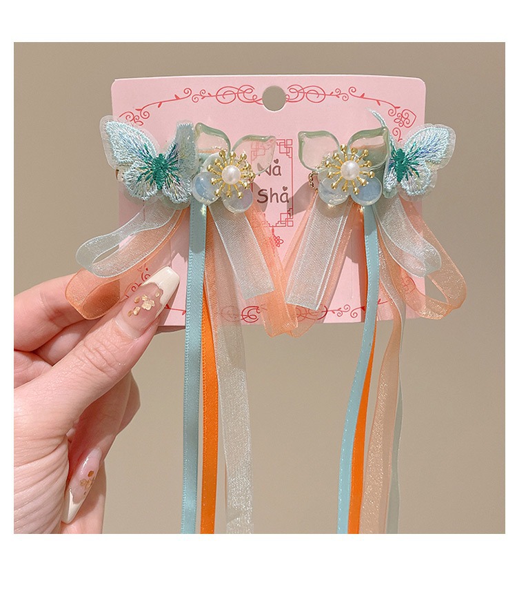 11# embroidered bow hydrangea tassel a pair of hairclips#