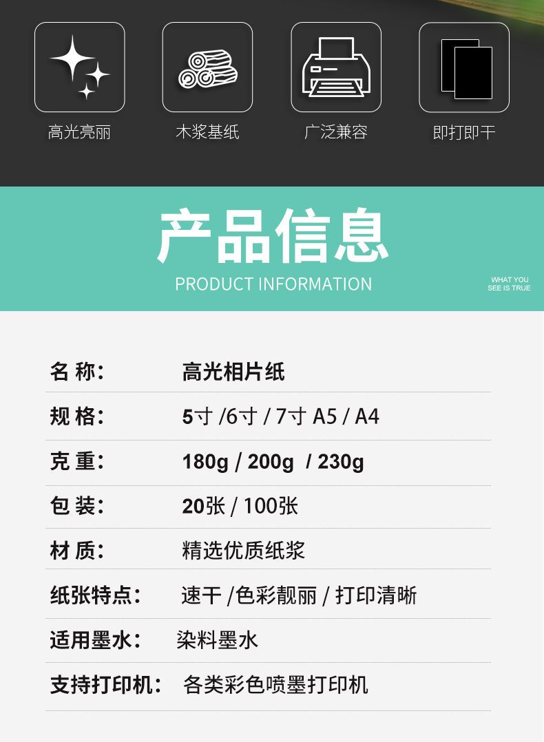 | 5-inch 200g * 100 sheets-highlight photo paper | CN¥ 19.47 | 999999 piece available |