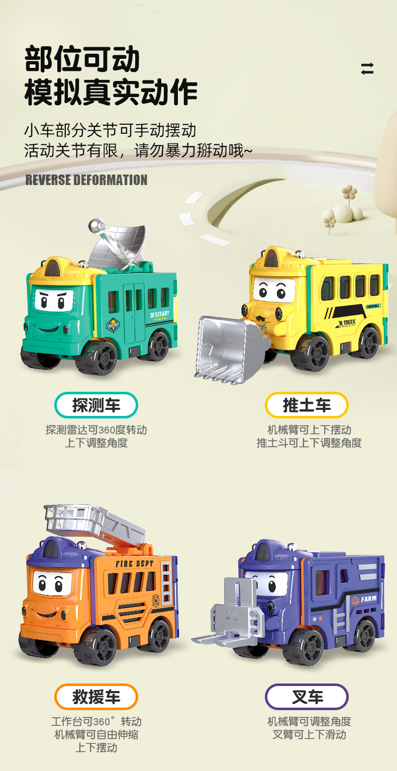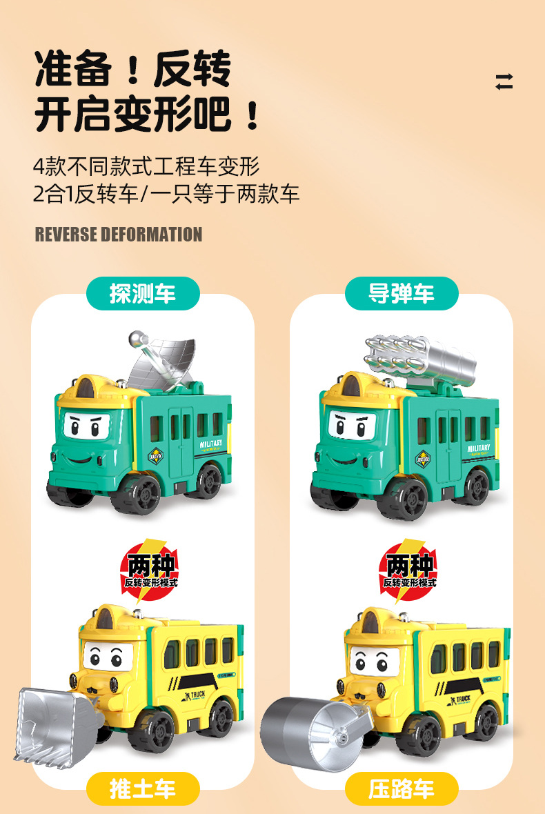 deformation reversing car (pull back car) detector car-bulldozer