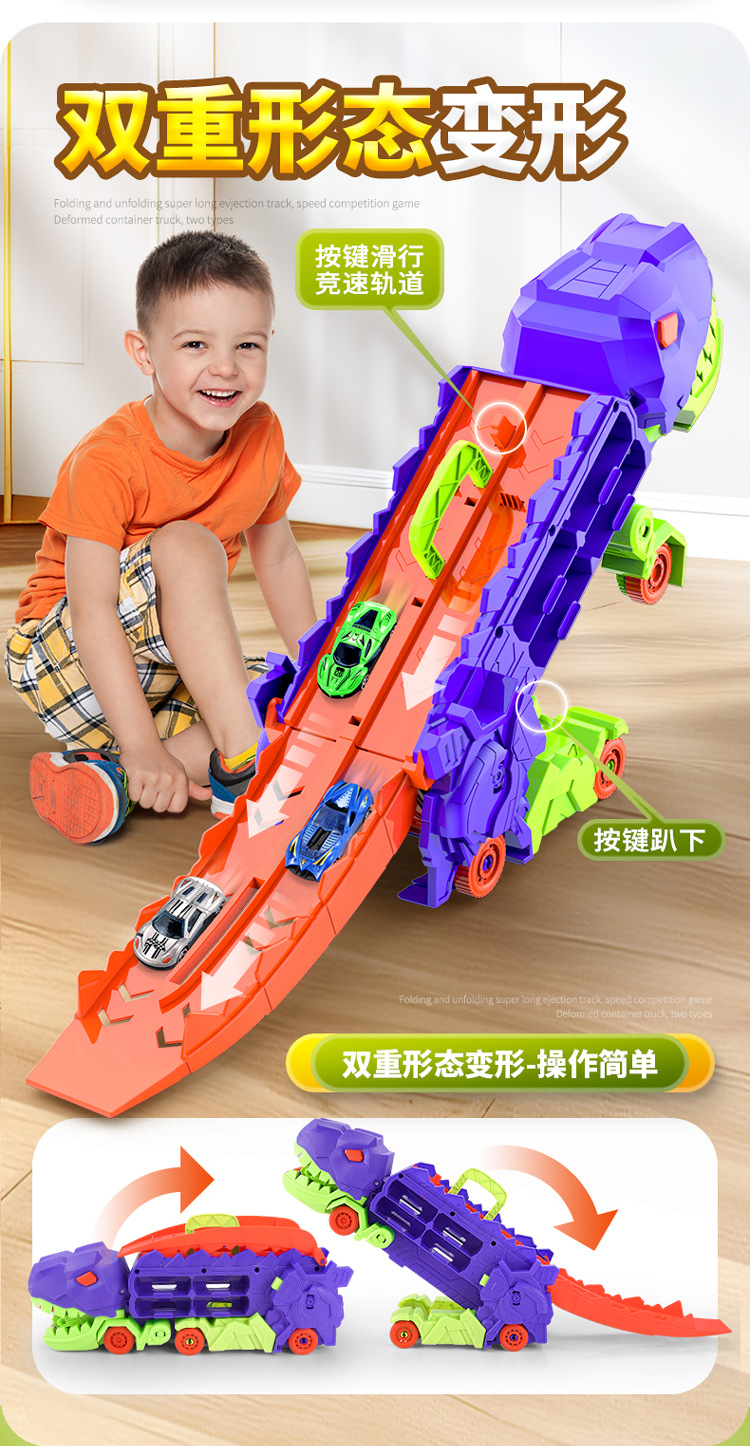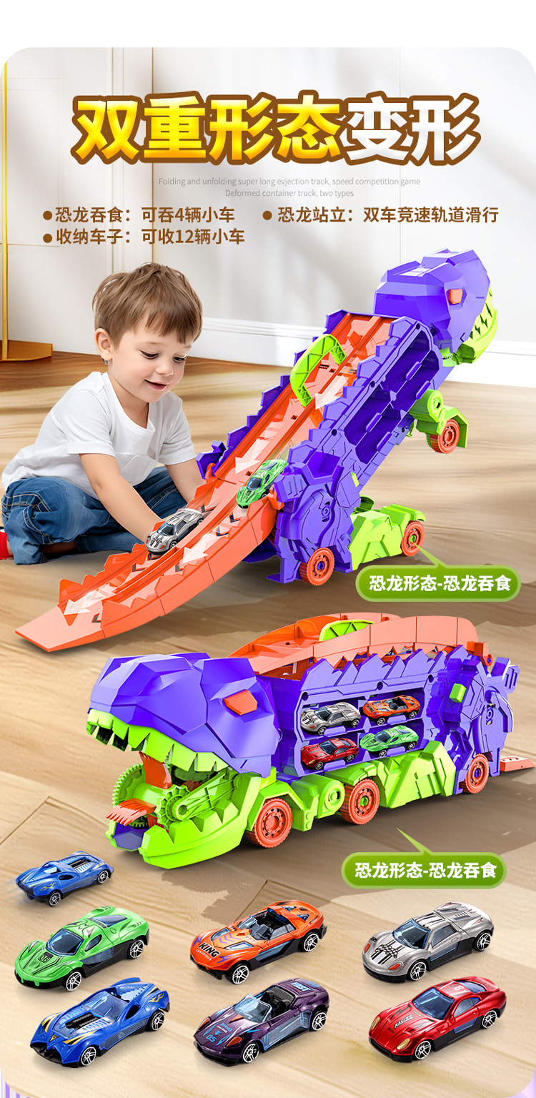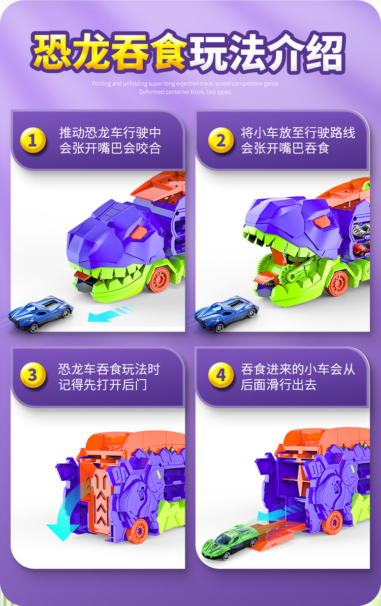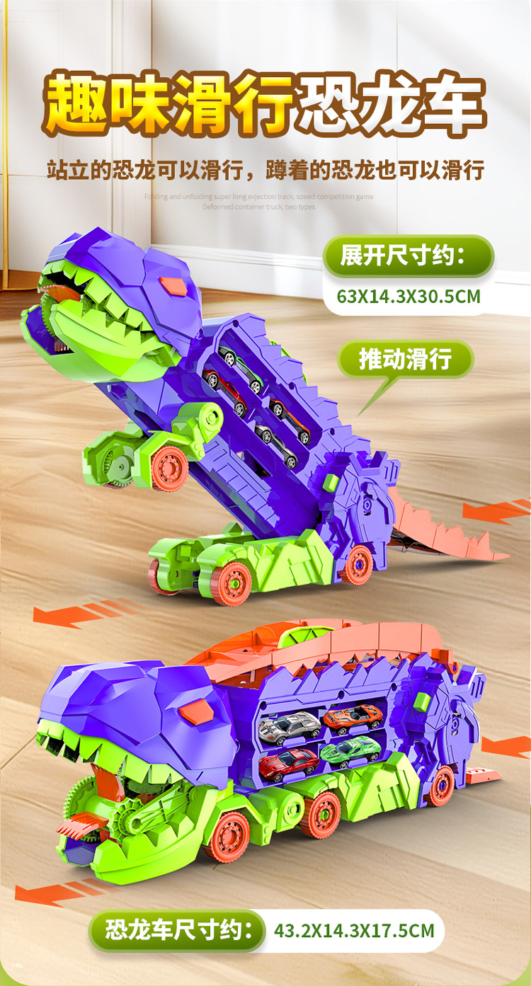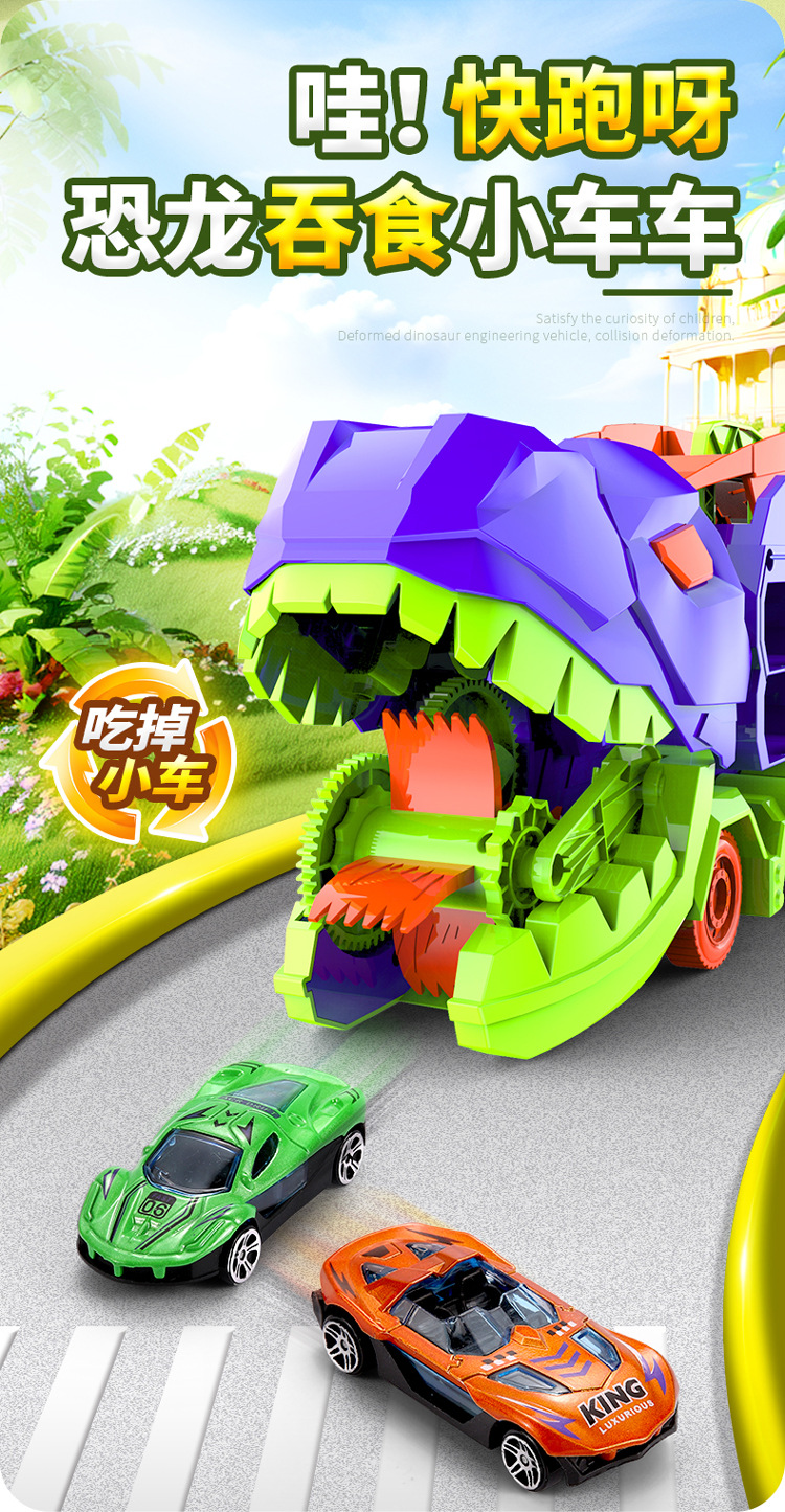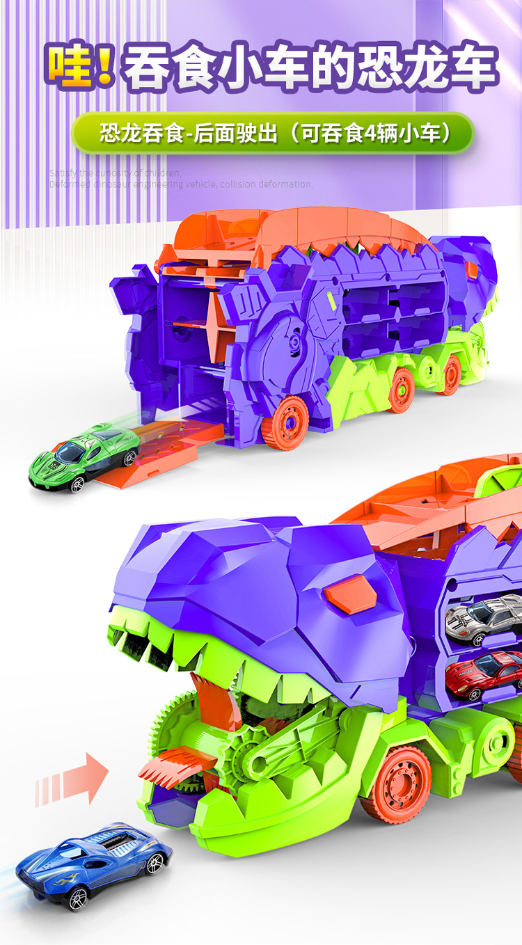 [radish color] tyrannosaurus rex swallow car to send 4 cars-english version