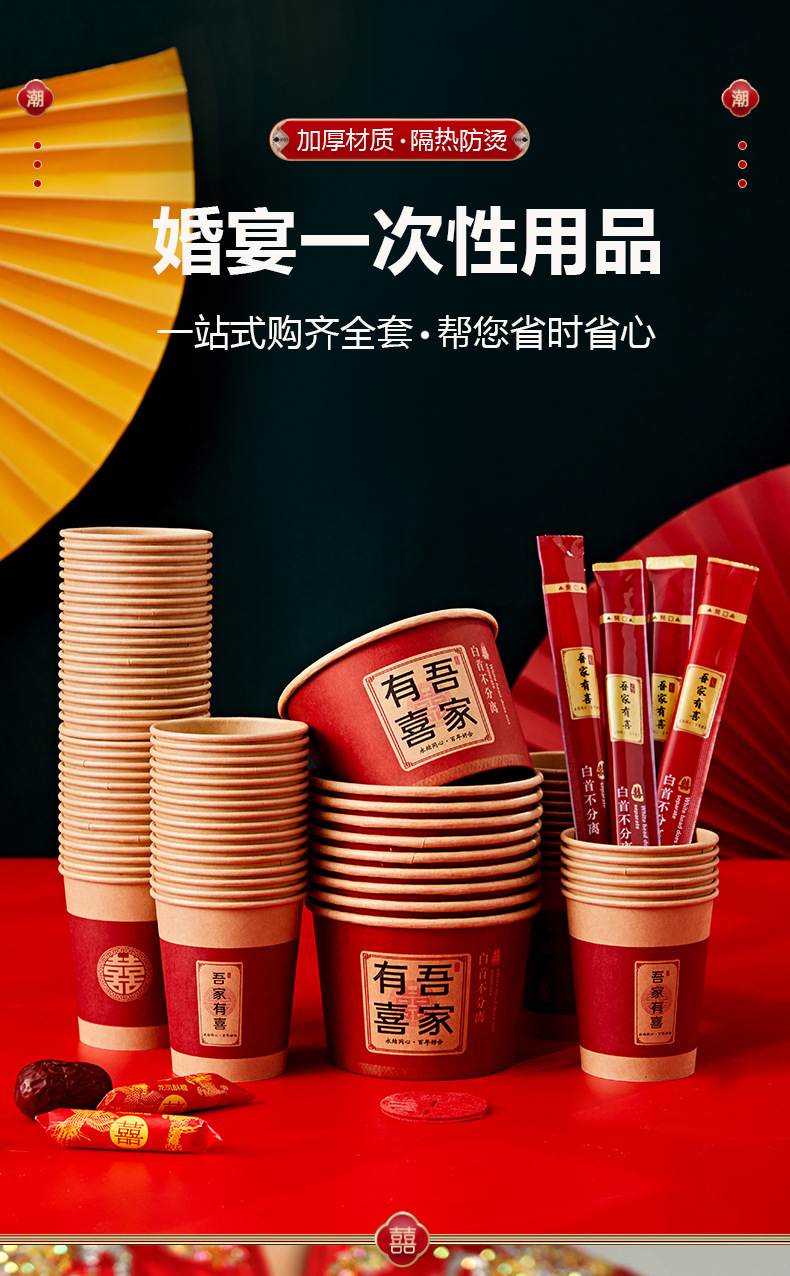 wedding disposable paper bowl bowl thickened red round wedding banquet bowl chopsticks wedding banquet paper cup tableware suit