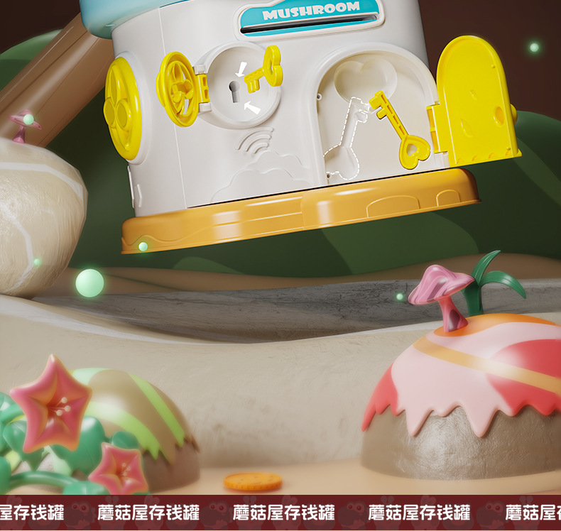 mushroom house coin bank (color box package) yellow