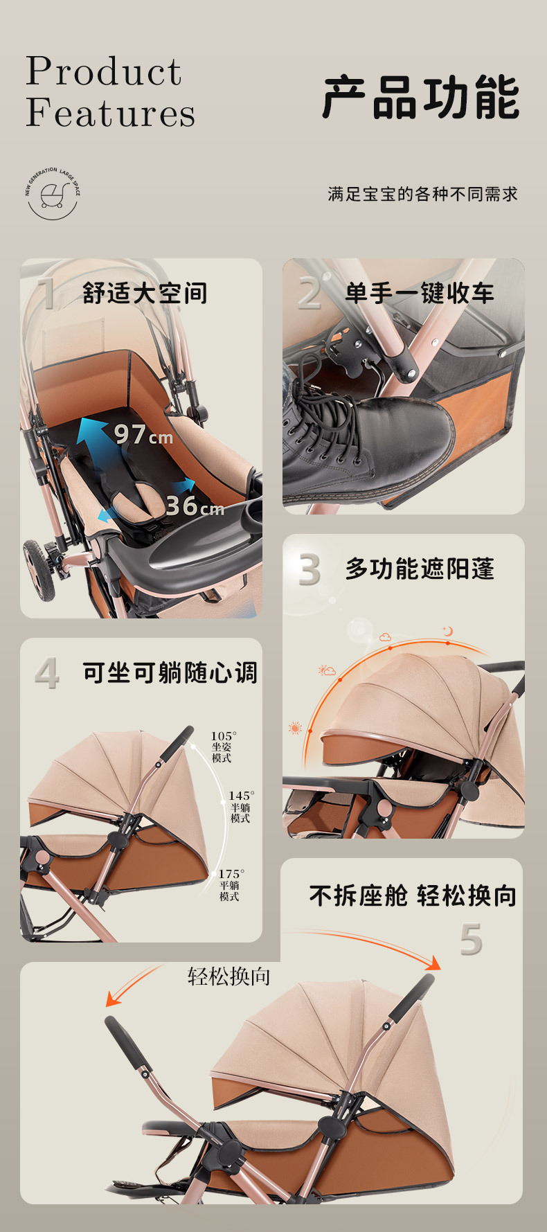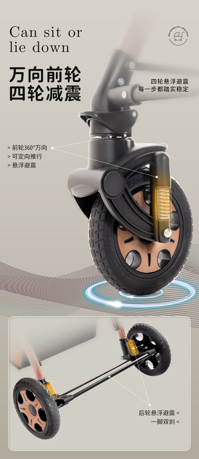 flagship-two-way implementation-khaki (eva large rear wheel) can sit and lie