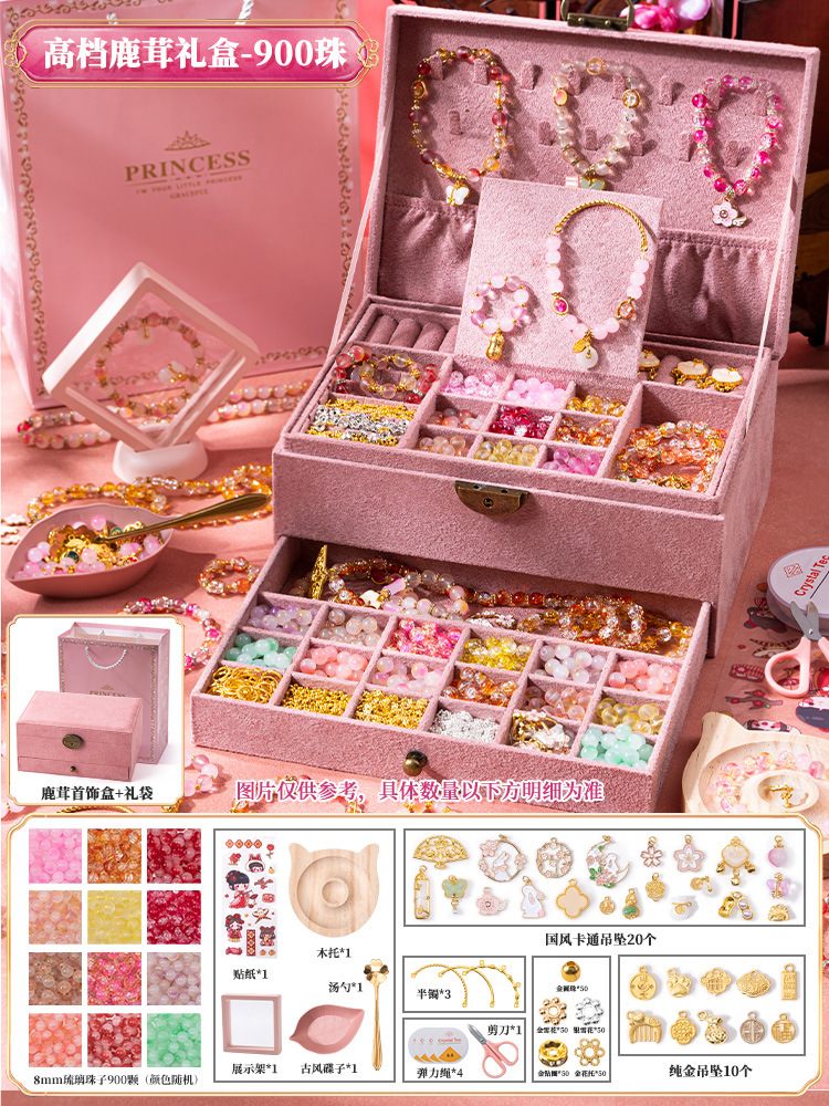 deluxe edition: pink national style 600 beads suit [high-end gift box + gift bag]]