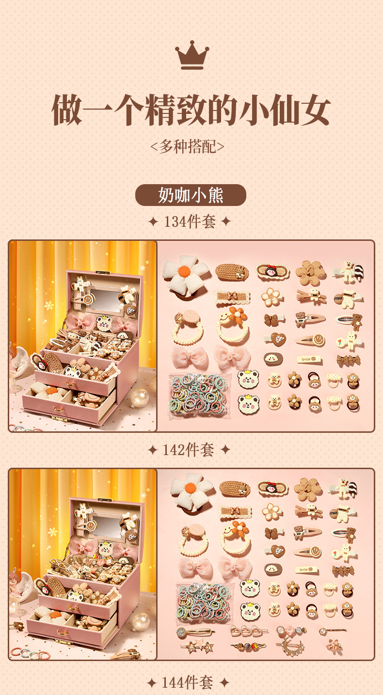 milk coffee bear upgraded 142-piece set-3-layer jewelry box