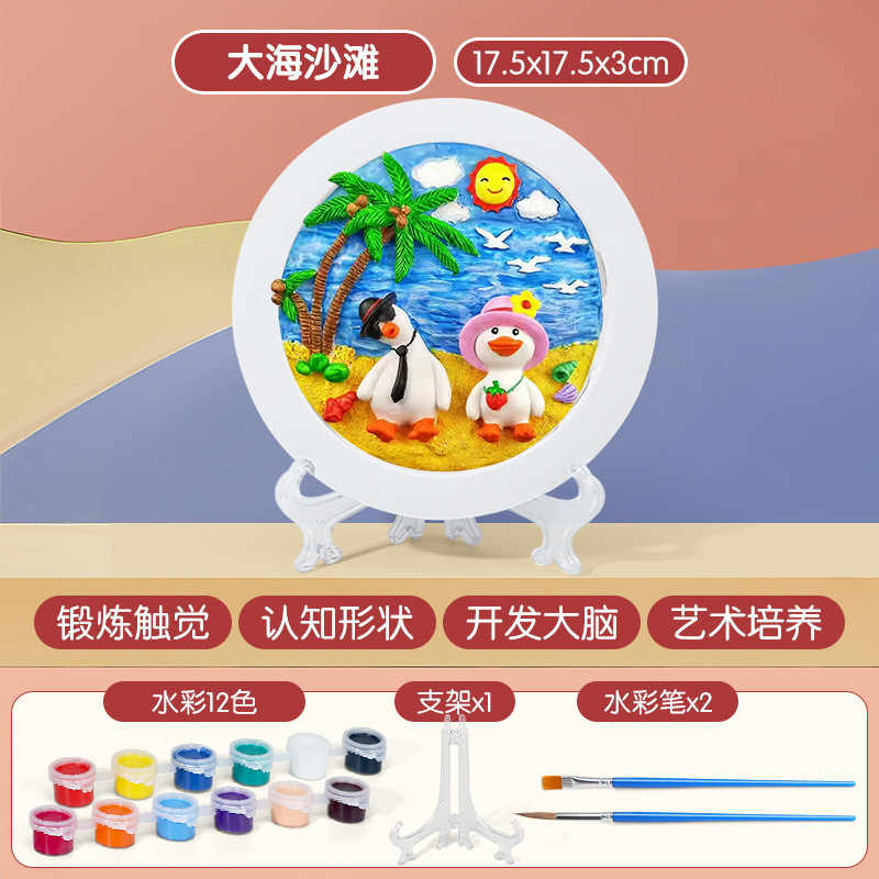 sea beach [large] +2 pens 12 colors 1 painting plate 1 bracket