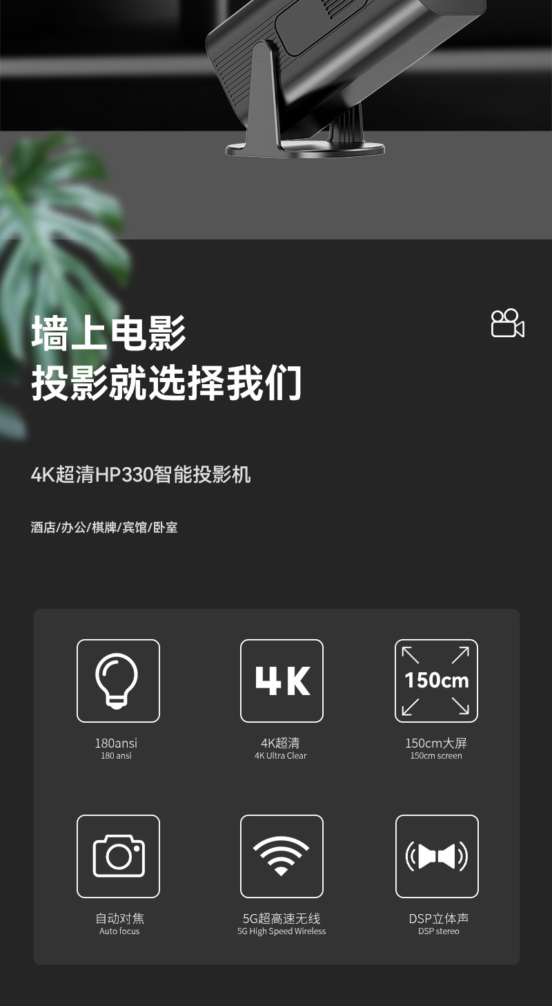 hp330 electronic focus hd 4k projection bluetooth 5g dual-frequency wifi android 10 intelligent voice projector