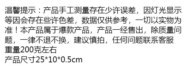 | 25*10 * 0.5cm | CN¥ 12.5 | 999999 piece available |