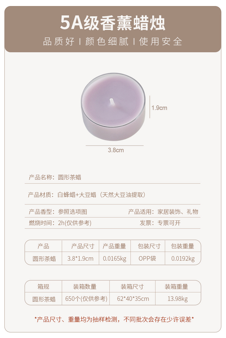 round tealight light pink (fragrance: peach oolong)